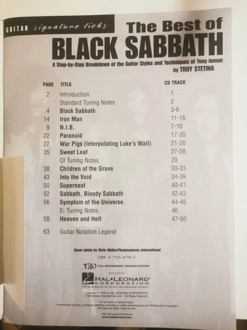 The Best of Black Sabbath kotta tabulatúra CD mellékeltettel 1998Versand