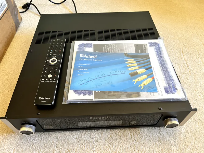 Contact: --- garin(a)wolke7.net ---This is my own McIntosh MX100. I bought it used myself to see if I`d like the sound, and I do, but I`ve decided to move up to the new MX200 so I can get some analog inputs. Everything works and it sounds great. Besides what`s included in the photos is the Audyssey microphone and tripod which are in the box along with all the original packing materials.