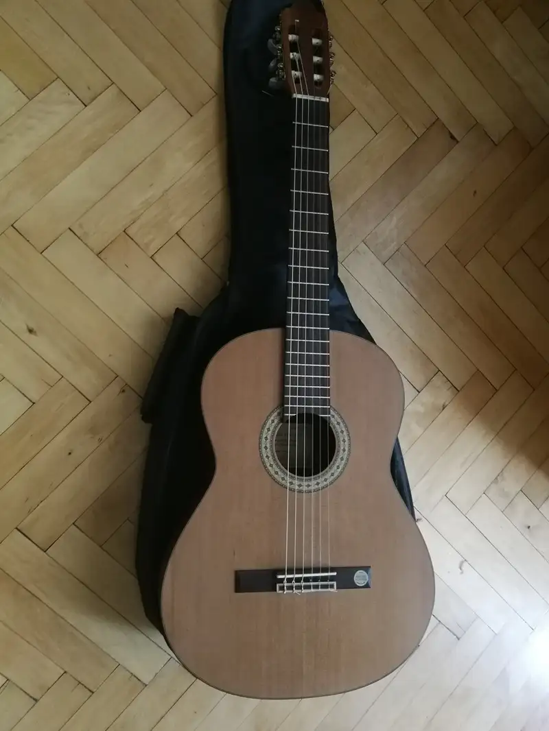 Üdv!Eladó egy gyönyörű, szinte új állapotú Miguel Almeria 10 CM klasszikus gitár. Eredeti spanyol nyak konstrukció, tömör cédrus fedlap. 1,5 éve vettem használtan. Előző tulajnál és nálam is csak porosodott. Új ára 98e, én 55e-ért adom. Adok hozzá egy Rockbag puhatokot. Megtekinthető, kipróbálható Csepelen.