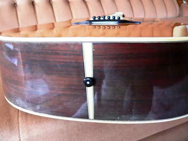 huendeskesJapanische Vintage-Gitarre in gutem Zustand. Ca. 30 Jahre alt, Palisander- und Fichtenkorpus, mit einem dickeren Profil aus einem Stück geschnitztem Mahagoni-Hals. Präziser, gut schwingender, ausgeglichener und reifer Klang, gekennzeichnet durch wuchtige Tiefen.