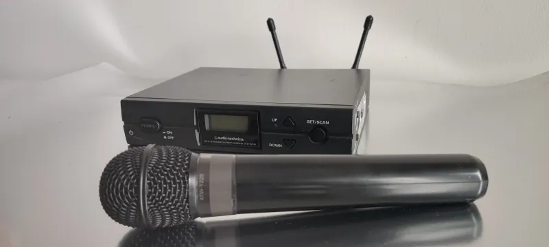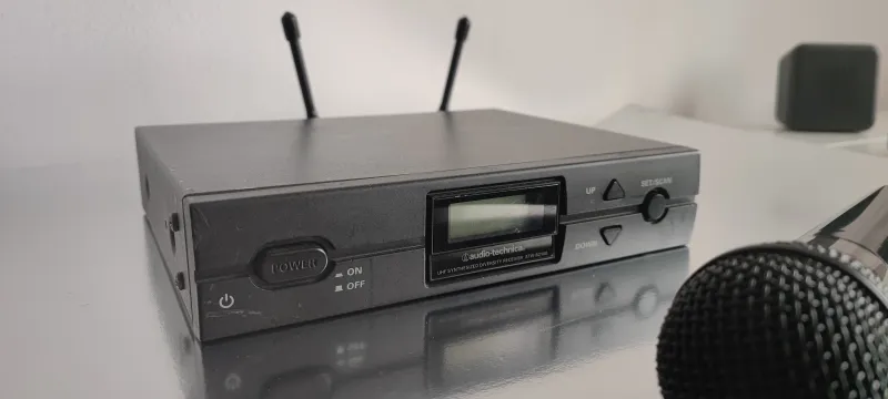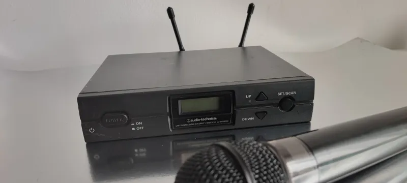 Audio-technica ATW-R2100 vezeték nélküli rendszer + Audio-technica ATW-T220 UHF mikrofon (a mikrofon 2 db AAA elemmel vagy akkuval működik) + gyári tápegység. Posta / futár a vevő terhére.Versand