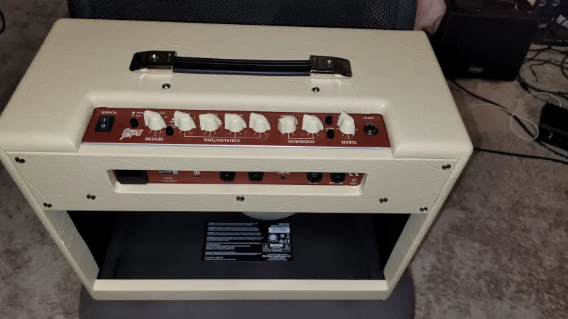 Eladó lett ez a szuper erősítő. kb 1 évig használtam otthon,kisebb koncerteken. Most nagyobbra váltanék és ezért adom el. 1x 12˝ Celestion hangszóró !!5w és 50 w teljesítmény kapcsoló is van rajta ami nagyon hasznos ha gyakorolni akarsz otthon. FET előfokos ami garantált tisztaságot ad, a Clean csatorna külső effektel is nagyon jól kihajtható 50 watt maxon is! Saját doboz és Thomann garancia! Csere nem érdekel köszi.