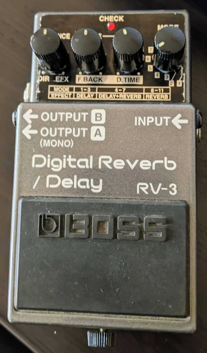Boss RV-3 Digital Reverb+Delay pedál kitűnő állapotban eladó.A Boss RV-3 egy igazi klasszikus: kiváló minőségű digitális zengető (reverb) és delay effektek egy pedálban. Számtalan hangzásra képes, a finom utóhangoktól a vastag, atmoszférikus textúrákig.