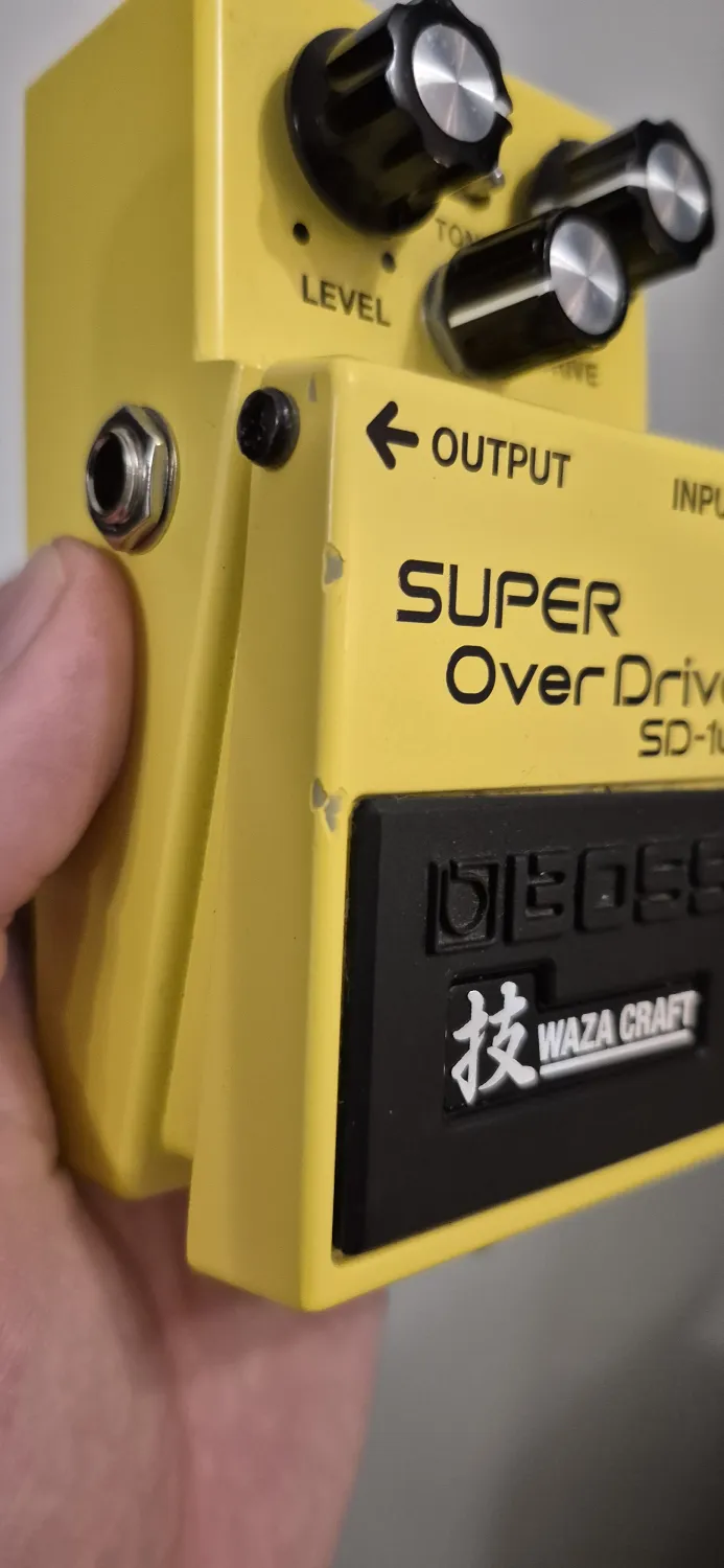 Eladó a képeken látható Boss SD-1W. Az SD-1 legenda Waza Craftosított tuning változata. Egy kapcsolóval lehet váltani a Standard (eredeti) és Custom (Waza Craft) mód között. Minőségi alkatrészek, igazi rock sound.Második tulajdonosa vagyok, a kéeken látható sérülések (a pedál bal oldalán/2. kép) nem tudom, hogy kerültek rá, de nálam nagy becsben volt tartva, csak szobában használtam. Tökéletesen működik.