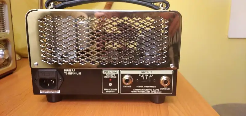 Bugera T5 infinium erősítő fej. 5w Tökéletes otthonra, JJ ecc83 előfokcső, és JJ el84 végfokcső. Az eredeti Bugera ecc83 el84 csöveket is adom hozzá.Szép, vintage hangzású erősítő, Voxos hangkarakterrel.