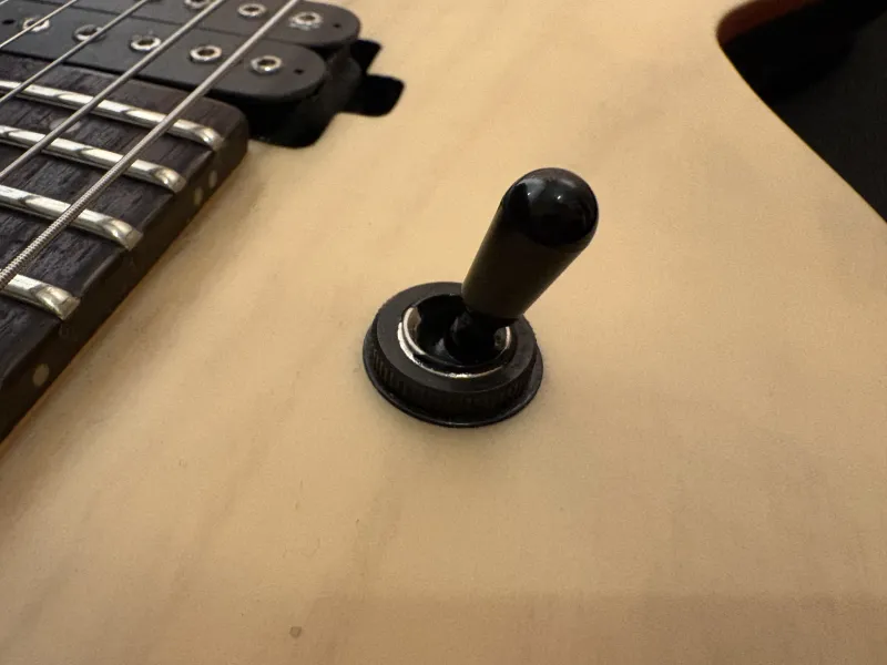 Kis kopás a pickupváltón (fotón látszik). Felezhető humbucker. Jól beállított hangszer.Verknüpfter Testbericht