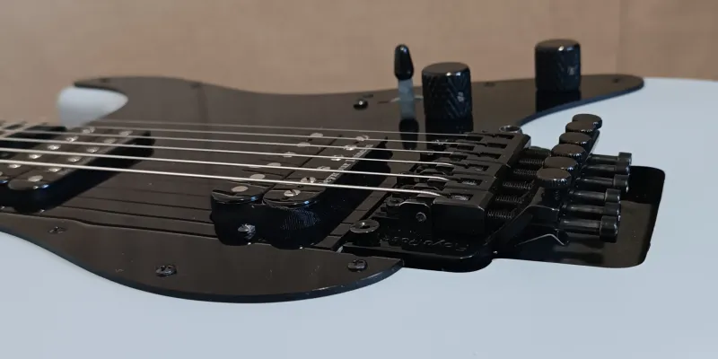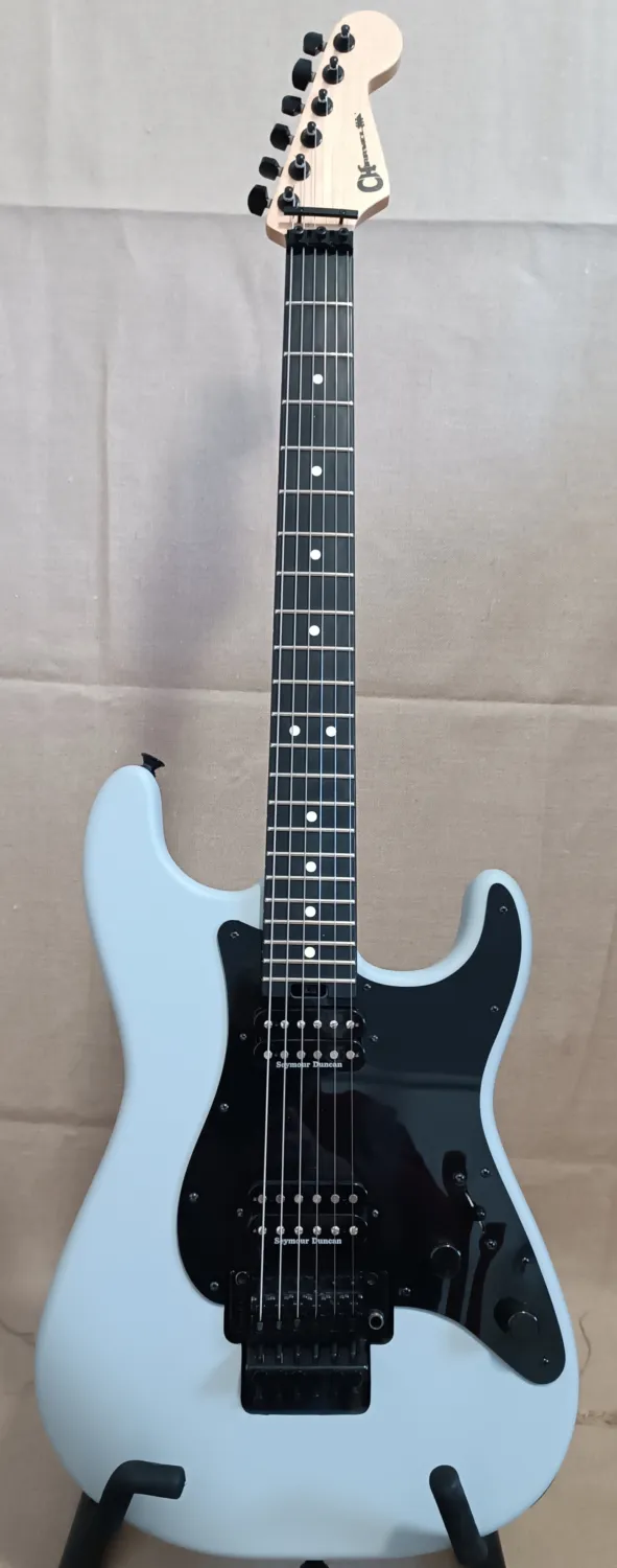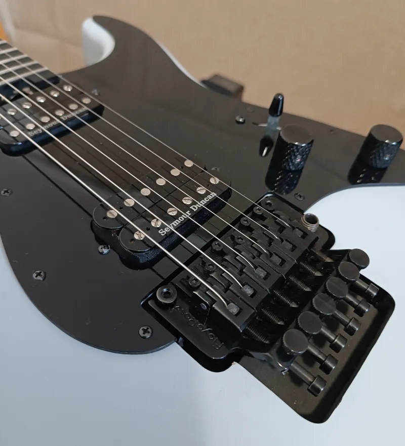 A Fender mexicói gyárában készült, még bő egy évig garanciás, minőségi hangszer. Éger test, kényelmes juhar nyak, ébenfa fogólap, 22 érintő, 25,5 col menzúra. Floyd Rose 1000 tremolo, Seymour Dinca Distortion SH-6N és TB-6 hangszedők. Háromállású pu kapcsoló. Hangszedők a push-pull hangerő potival felezhetők. Annak ellenére, hogy nagyjelű kerámiamágnese hangszedőkről van szó, nagyon szép, kerek tiszták szólalnak meg. A hangszín palettát bővíti a no-lead hangszín poti, ami nulla állásban a teljes hangszín potmétert leválasztja, így a magas tartomány teljesen érintetlenül jön át. Puha tok jár a gitárhoz.Versand