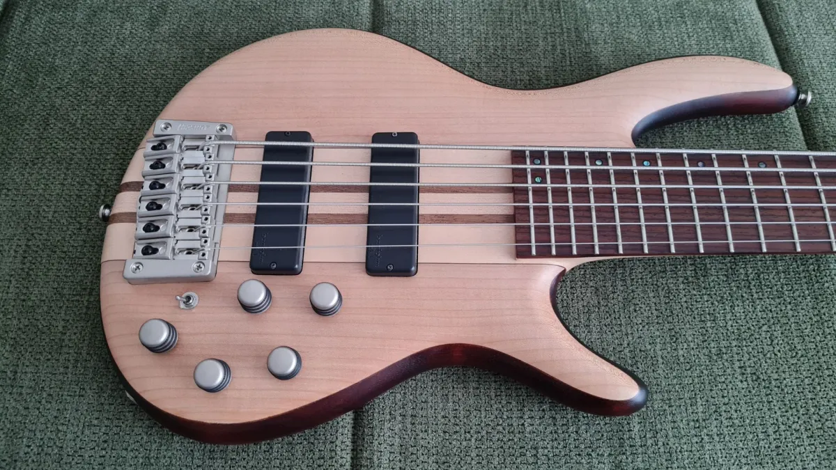 Eladó egy alig használt, újszerű állapotú Cort A6 Plus FMMH (Artisan széria) 6 húros basszusgitár. A hangszer 2023 októberében teljes hangszerészi beállítást, professzionális bundsíkolást kapott. Végül alig használtam, így a beállítása és a húrok állapota is kiváló. Kihasználatlanság miatt adom el.