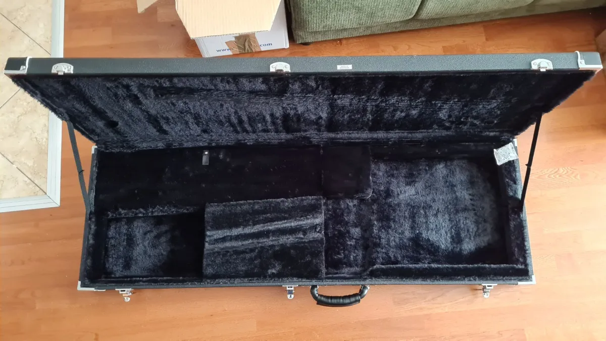 Állapot: Szerkezetileg makulátlan. Esztétikai hiba: a test oldalán egy kb. 1 cm-es, felületi benyomódás található (fotózva), a hangzást nem befolyásolja.
