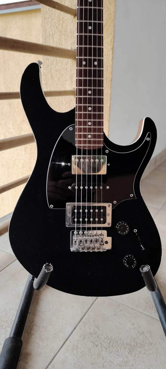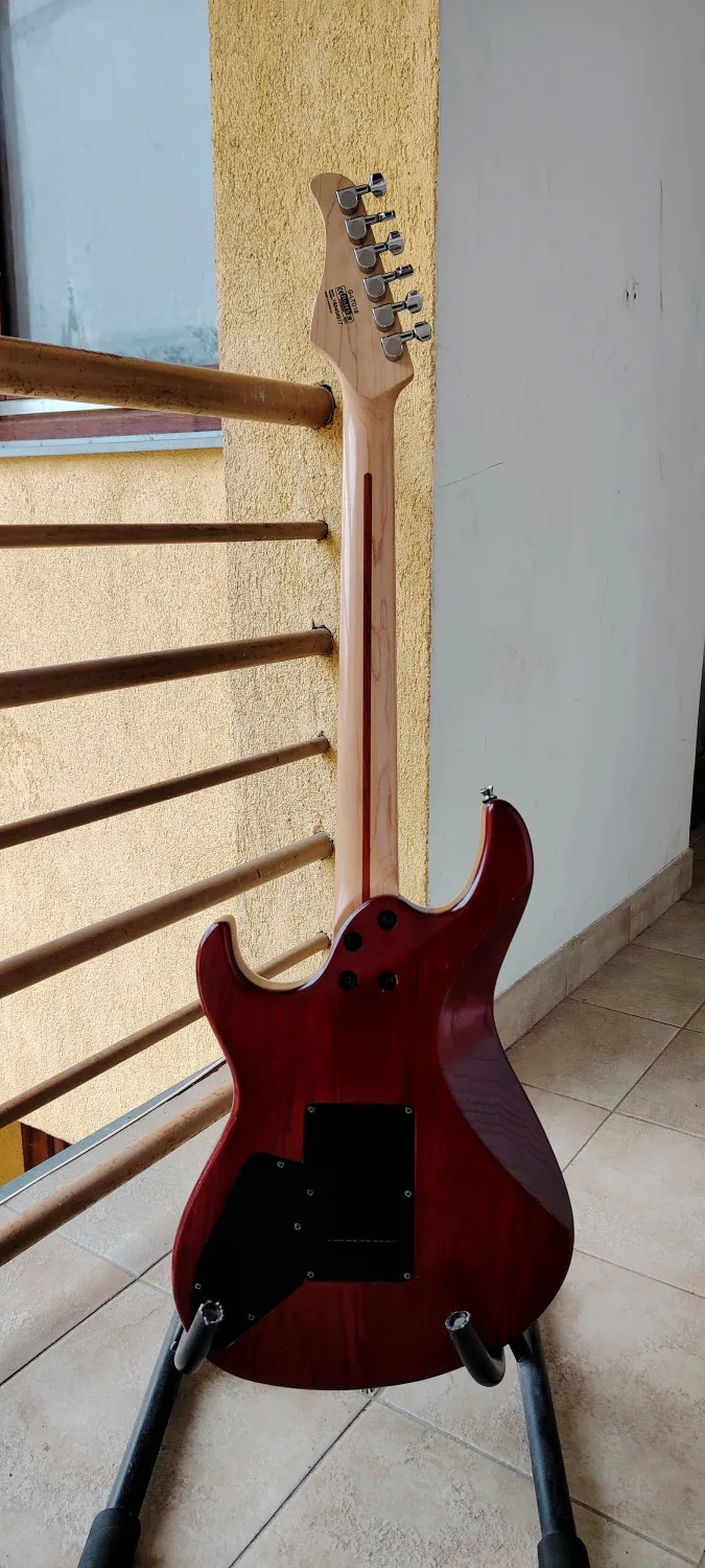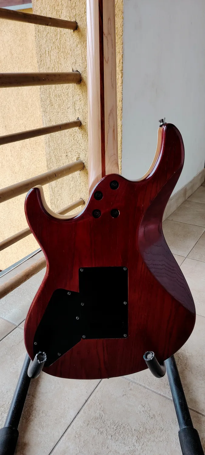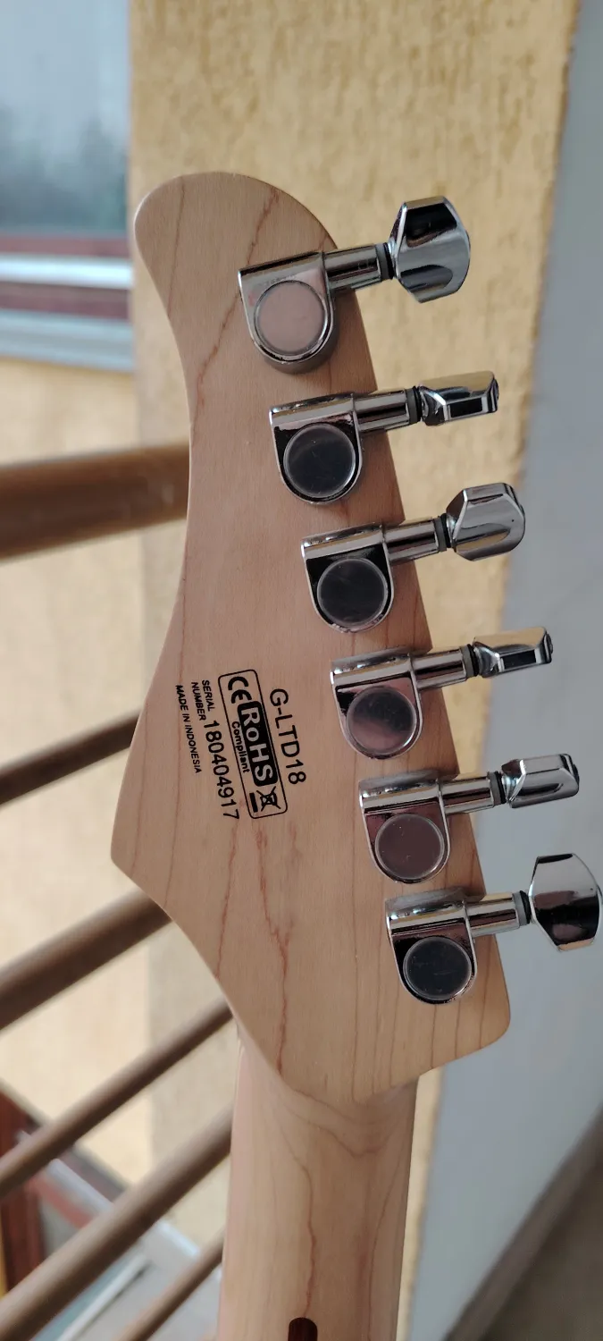 Sziasztok. Eladó a képeken láható elektromos gitár. Bizonyára észre vettétek nem a megszokott gyári kinézetű. Nos. Aki ezt a tipust ismeri, az tudja, hogy gyárilag ez a gitár egy olyan toppal jött ki, ami egy szemcsés, durva felületű. Ezt én módosítottam. Simára lett csiszolva, lakkozva, majd egy velur bevonatot kapott, ami egy elegans megjelenést teremtett. Illetve nyakhoz került egy humbucker, ami egy dögös mélyebb hangot biztosít. Egyénileg kialakított koptató is került rá. A másik két hangszedő gyári! Nyaka nagyon kényelmes, alacsony húrnyomással be állitva, így sem zizeg! Ernie Ball 10-46 húrral felszerelve. Vékony puha tokot tudok hozzá adni. Akár karácsonyra is egy szép ajándék lehet.Verknüpfter Testbericht