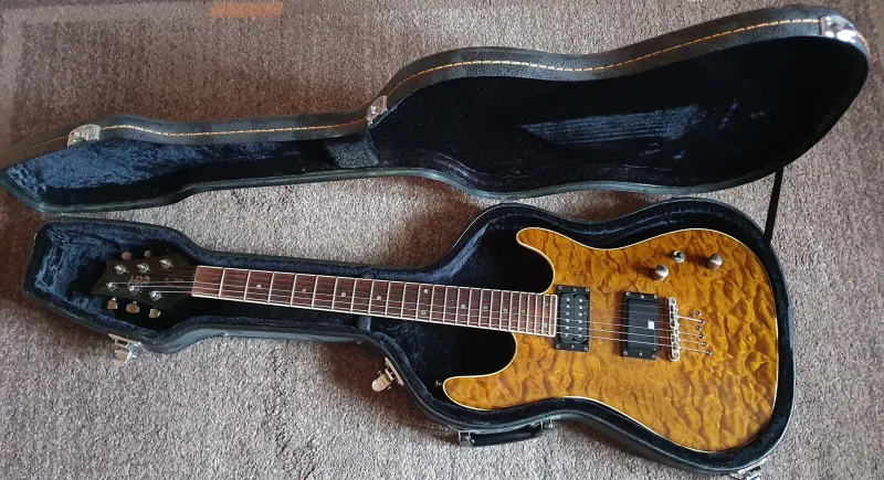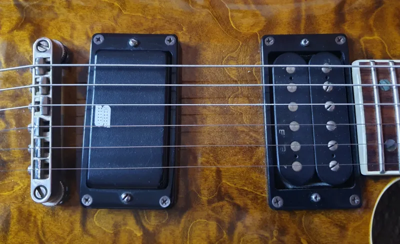 Seymour Duncan Mick Thomson (Slipknot) signature aktív hátsó hangszedővel, ennek új ára jelenleg 69.900 Ft! A nyaknál az eredeti EMG HZ van, ami felezhető a Tone poti kihúzásával.- Mahagóni test, juhar fedlap