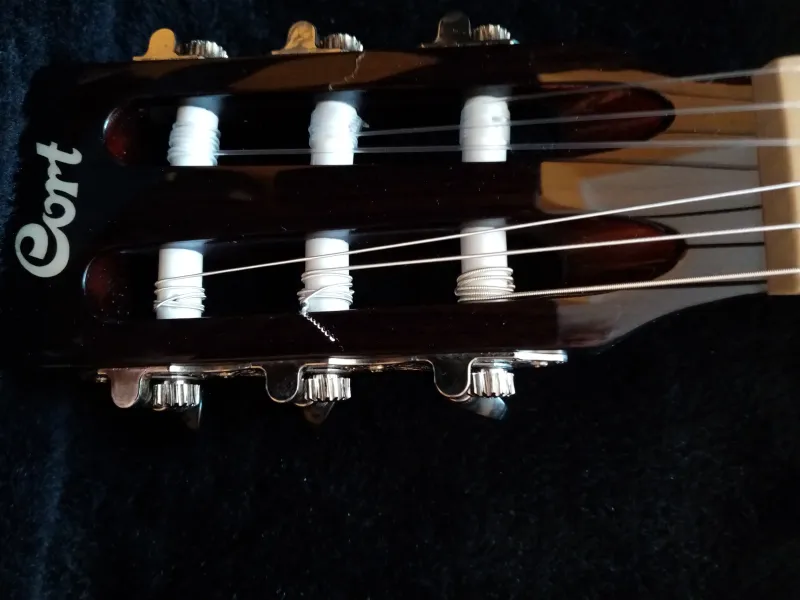 Cort Elektroakusztikus klasszikus gitár eladó ! Alacsony húrnyomásra állítva.Új húrok vannak rajta. Fej a hangolókulcsnál szakműhelyben javítva lett ,kisebb repedés ragasztva lett, alig látszik.Verknüpfter Testbericht