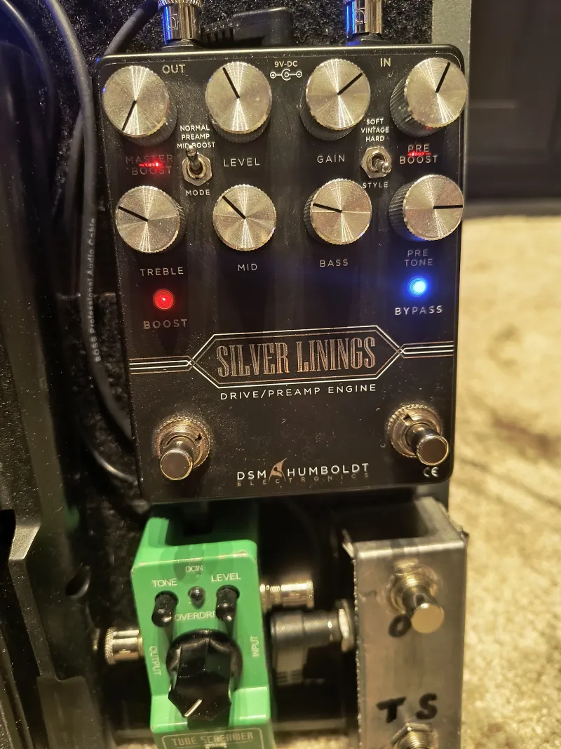 Sajnos a digitális kényelem (lustaság?) kiszorította a board-ról. Kivételes pedál.A bal oldali mini kapcsolóval alap funkciót választunk. Felső állásban erősen középdús overdrive, alsó állásban sima overdrive a hagyományos csöves hangzásvilággal. A középső állásban a pedál előfokként üzemel, jelentősen nagyobb jelszinttel, ahogy kell. Ez akár mehet egyből végfokba.