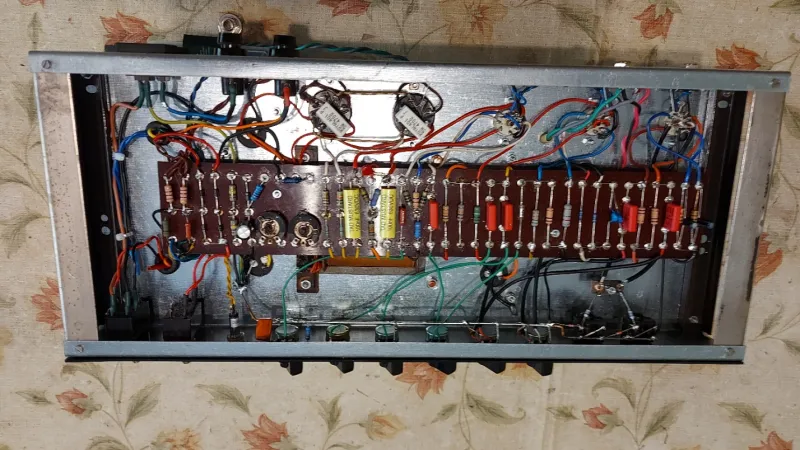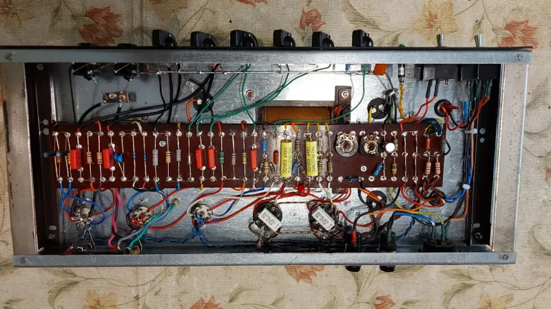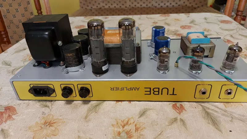A Marshall 1987 (Plexi) erősítőnek a kapcsolási rajza alapján, egyedileg, forléces szereléssel, kézi huzalozással, /ponttól-pontig/ elkészített és gondosan bemért másolata, gyári kombó dobozban, Fame 12˝-os 80 W-os hangszóróval. Gyári trafók, új alkatrészek (3x Marshall ECC83, 2x párba válogatott RFT EL34, - Biasolhatóan.) Szép, tiszta rock sound zajmentesen, hatalmas dinamikával.Személyes meghallgatását javaslom, de bizalom esetén postázom a vevő felelőségére.