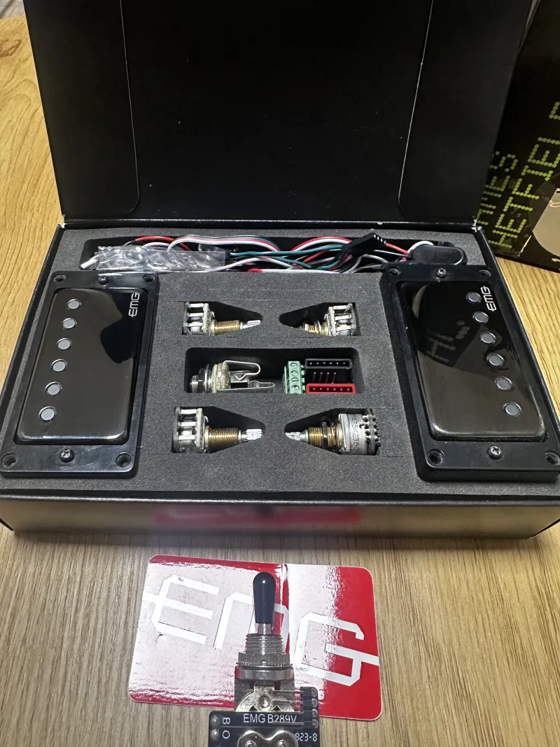 Eladóvá vált 2024-ben vásárolt EMG hangszedő szettem minden gyári tartozékával. 1db tónus potméter teteje sérült minden más kitűnő állapotú. Ajándékban adok hozzá 2db fekete hangszedő keretet, valamint egy kompatibilis EMG 3 állású pickup kapcsolót, amit alapból nem tartalmaz a készlet.Versand