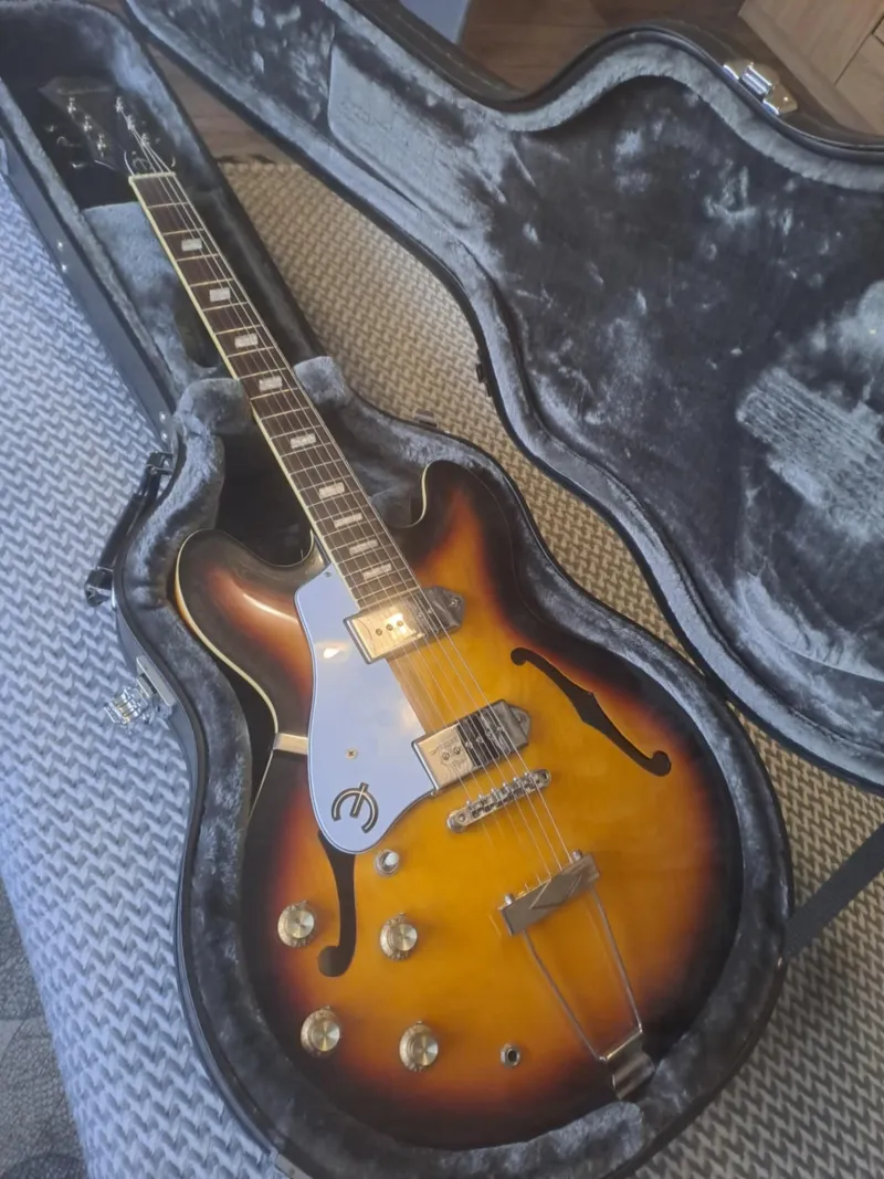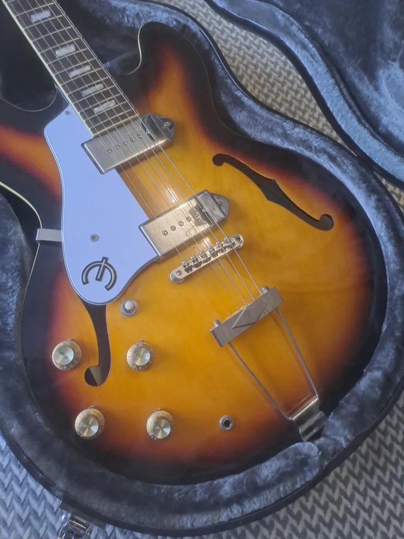 Eladó a képen látható Epiphone Casino 2020-as balkezes gitár, a hozzátartozó keménytokkal. Működése hibátlan, a hangolást jól tartja, alacsony húrnyomás, kényelmes nyak, Laurel fogólappal.Egyetlen hibája a fej fényezése javítva volt, de ez csak egy kis szépséghiba, a működést egyáltalán nem befolyásolja.