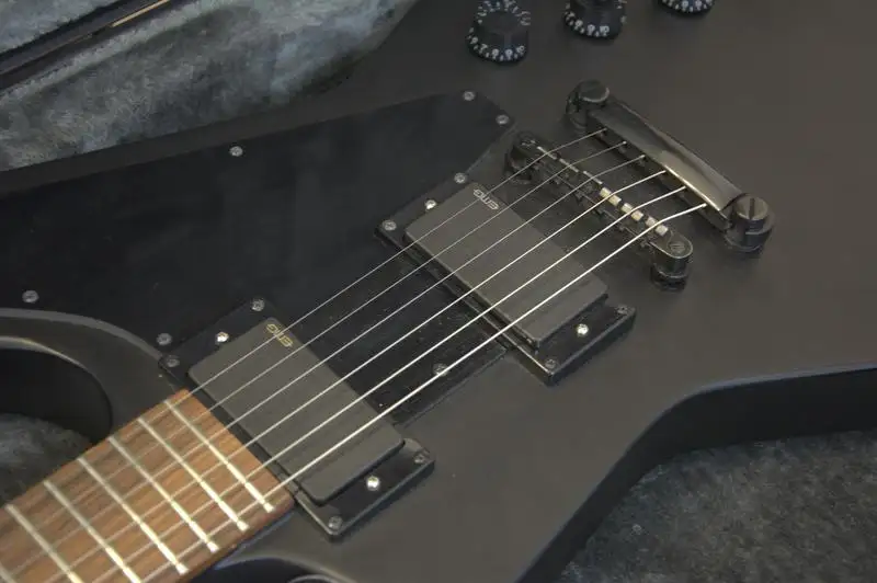 Kihasználatlanság miatt eladó egy jó állapotú Gothic Explorer (megvettem, aztán 2-szer játszottam rajta kb.). Az alap hangszedők le lettek cserélve EMG 81-85 párosra (Zack Wylde szett) az előző tulajnak. Erről a szervízpapír is megvan/1-2 elektronikai alkatrész amit szintén cseréltek (eredeti hangszedők nincsenek meg). Kicsit berezeg a mély E húr az alsó bundokon.Keménytok és vállpánt is jár hozzá.