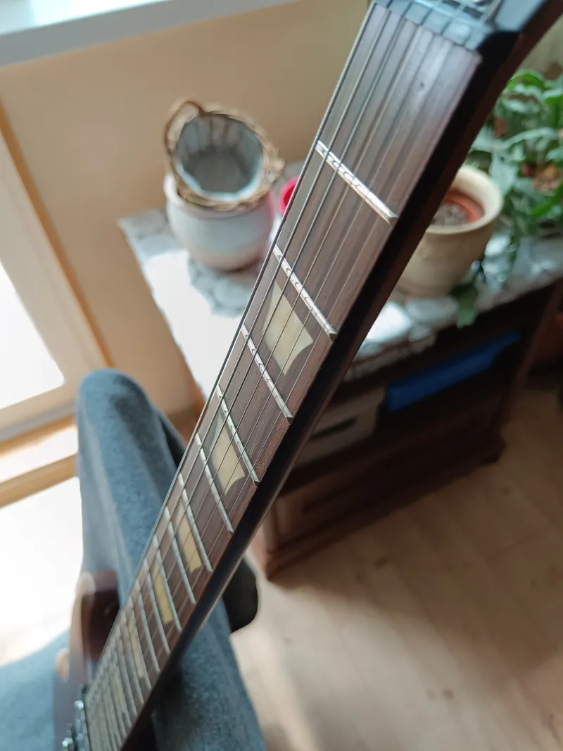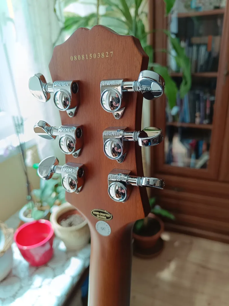 - teljes mahagóni test, mahagóni furnér top és hátlap (!), mahagóni nyak kényelmes SlimTaper profillal, rózsafa fogólap, rózsafa nyak binding, trapéz jelölők, pearl crown inlay a fejen