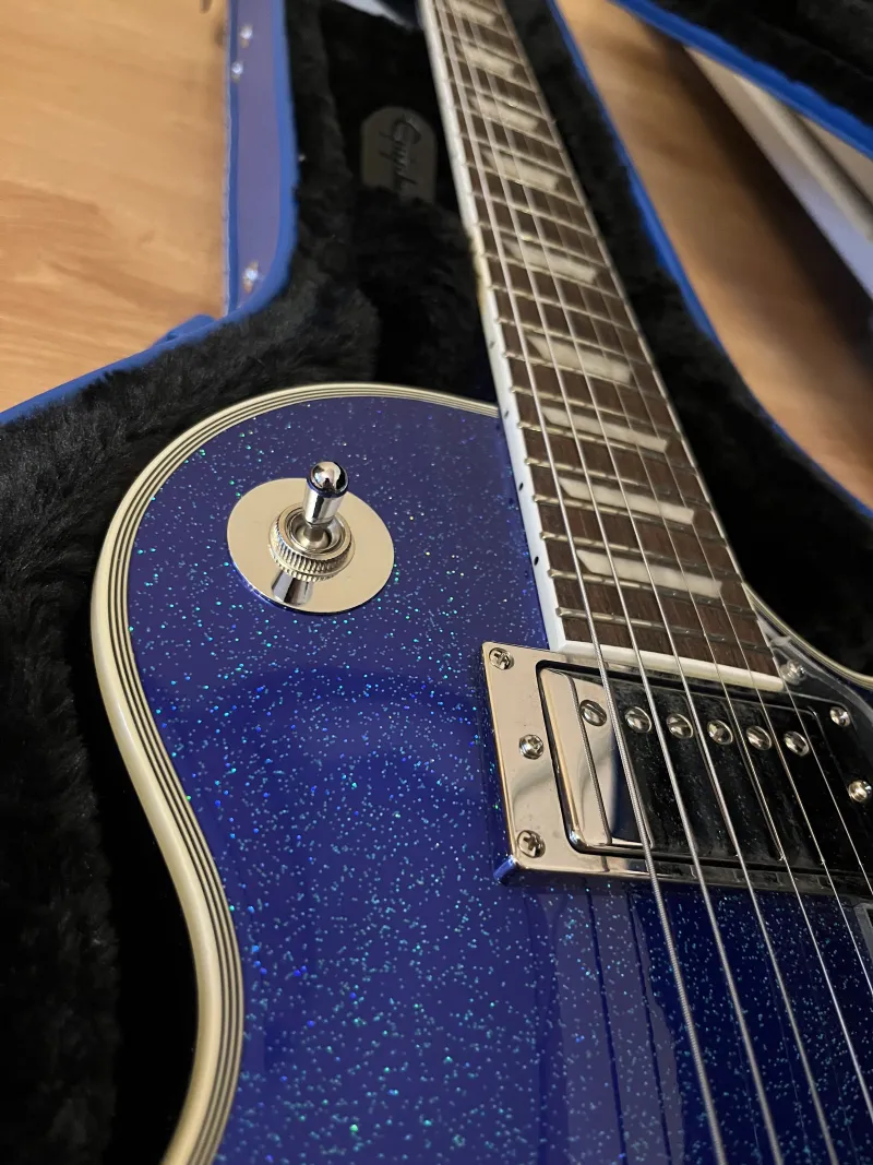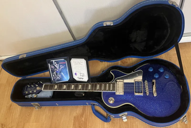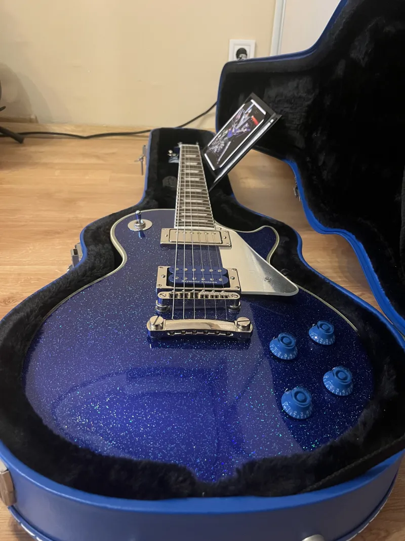 Megfelelő ajánlat esetén eladó a címben említett limitált szériás Tommy Thayer signature electric blue Les Paul. Hajszálkarcmentes, gyűjtői állapotú, összesen kétszámjegyű órát sem volt használva. 10-46-os Elixir húrok vannak rajta (gyakorlatilag az első szett, amit a gyári húrok után felraktam), a húrcserénél a fogólap le lett ápolva. A koptatón még a gyári fólia rajta van, certifikáttal, gyári kék tokjával és hozzá illő metálkék strap-lockos hevederrel adom. Mahagóni test, juhar fedlap, Seymour Duncan JB hangszedők.