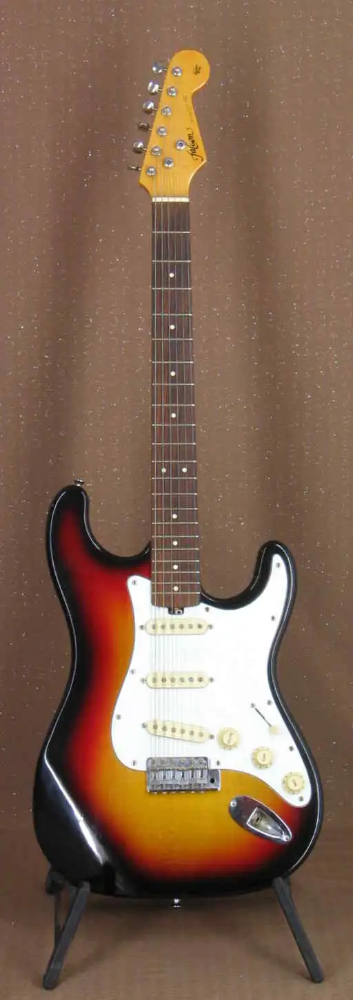 huendeskes Falcon Stratocaster. Wir wissen nicht, wie alt sie ist oder woher sie stammt, sie ähnelt nicht einmal den aktuellen Falcon-Gitarren, aber sie ist kein Jungspund... Technisch in Ordnung, Flugerlaubnis erteilt!