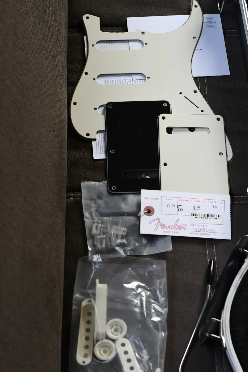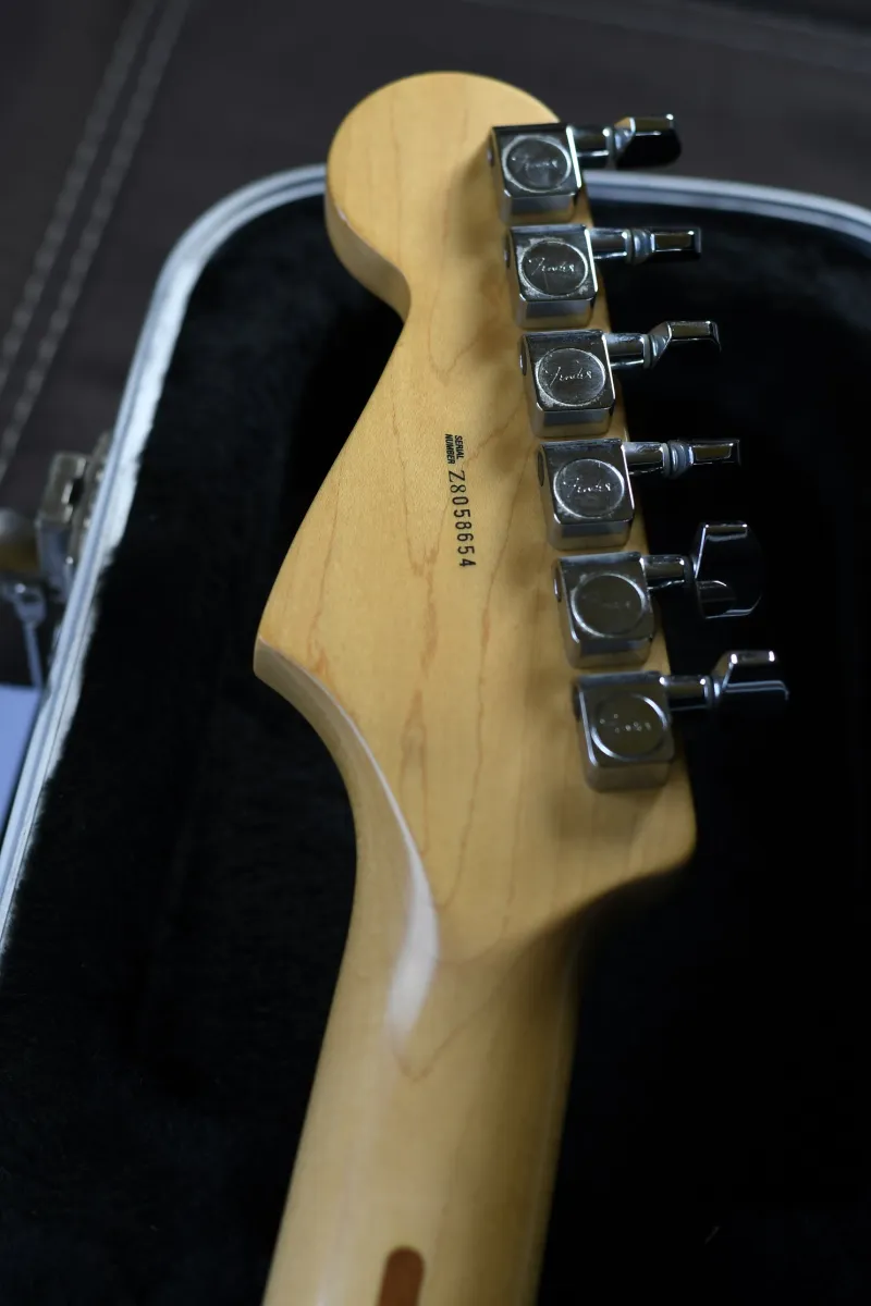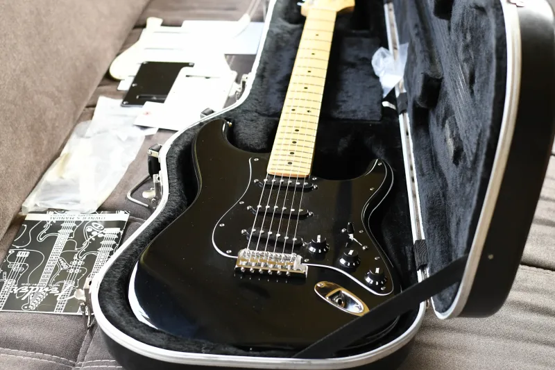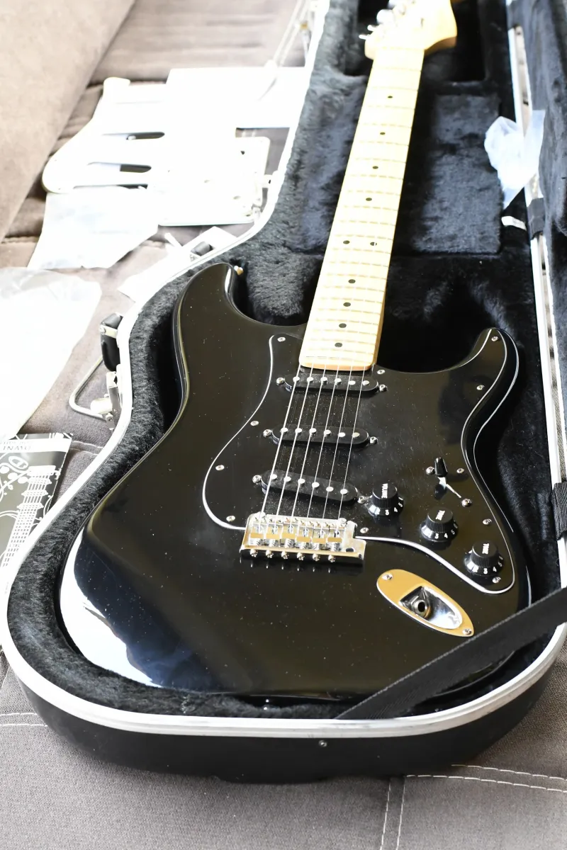 Eladó nagyon szép állapotú 2008-as Fender American Standard Stratocaster kemény tokjában, papírjaival. A gitáron a műanyag szerelvények (koptató, poti sapkák stb) cserélve lettek feketére de mindenből megvan az eredeti is. A húrláb babák is cserélve lettek, de ebből is megvannak az eredetiek is, adom hozzá. Szerintem így a fekete szerelékekkel nagyon Gilmour ˝Black Strat˝ -ra hajaz. Beérett, rezonáns jó hangszer.Egyetlen leverődést vagy beütődést sem látok rajt, bundok is szuper állapotban (a képeken kis por látszik, elnézést)