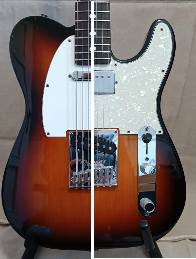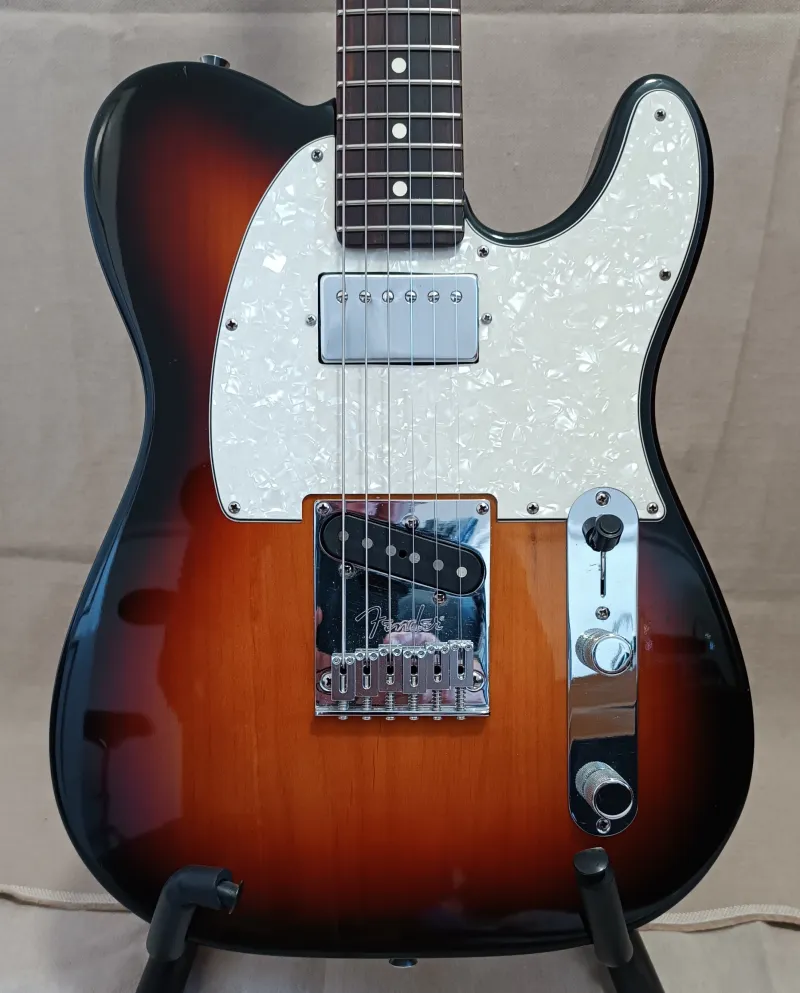 2008-as Ameriocan Standard Telecaster, új American Prof II rózsafás Telecaster nyakkal. 22 db keskeny, magas érintő, 9,5 col rádiusz, valódi csont nyereg, kényelmes Deep C nyak profil, a fejnél karcsú, a test felé vastagodó, hátul selyemfényű, a fejen fényesre lakkozott nyak. A nyak, 2024 februárjában a Thomann-tól került beszerzésre ( közel 200 e Ft ). Schaller satus kulcsok, Gotoh acél babák. Éger test, 3,6 kg súly, mikro tilt nyak állítás. Eredeti, jelölt, dátumozott elektronika. Nagy jelű, Hot, Am.Std. Tele hangszedők. No-load hangszin poti. A test hangszedő árok kialakítása további fejlesztési lehetőségeket kínál. Koptató cserével a nyaknál rövid lábú humbucker is beépíthető, sőt még egy harmadik hangszedőnek is van hely. Ebben az árban a gyári nyaki hangszedő mellé egy koptatóra szerelt humbuckert is adok. Műszakilag kifogástalan, esztétikailag nagyon szép állapot. Delux Fender keménytok. Kérésre további képek, részletek.Versand