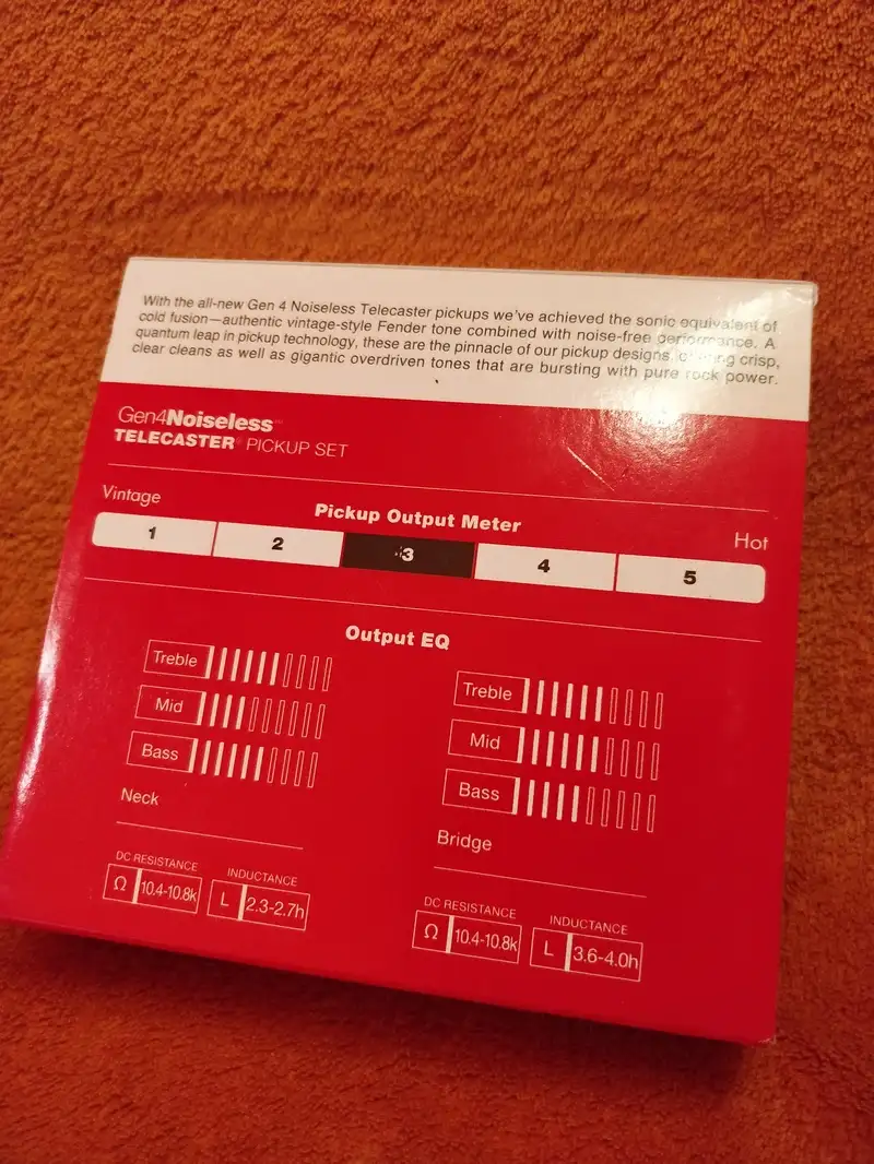 Eladó a képeken látható, egyszer sem beszerelt, bolti állapotú Fender Gen4 Noiseless pickup set.Fender hangszedők egyik legjobbja, zajmentes hangzás, remek vintage karakter, dinamikus és gazdag hangzás, ellenállás: nyak: 10,6K, híd: 10,6K