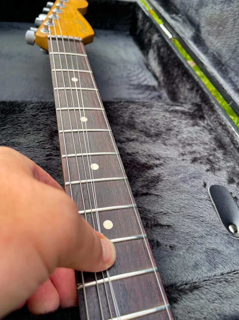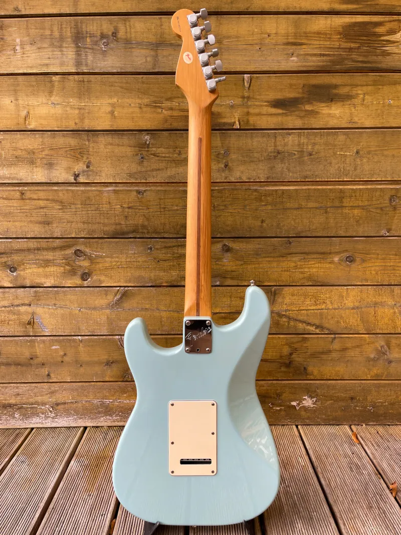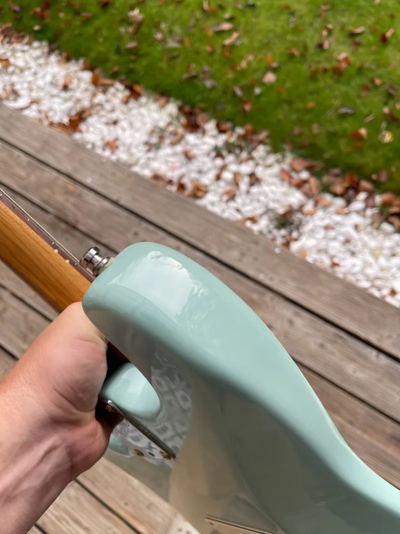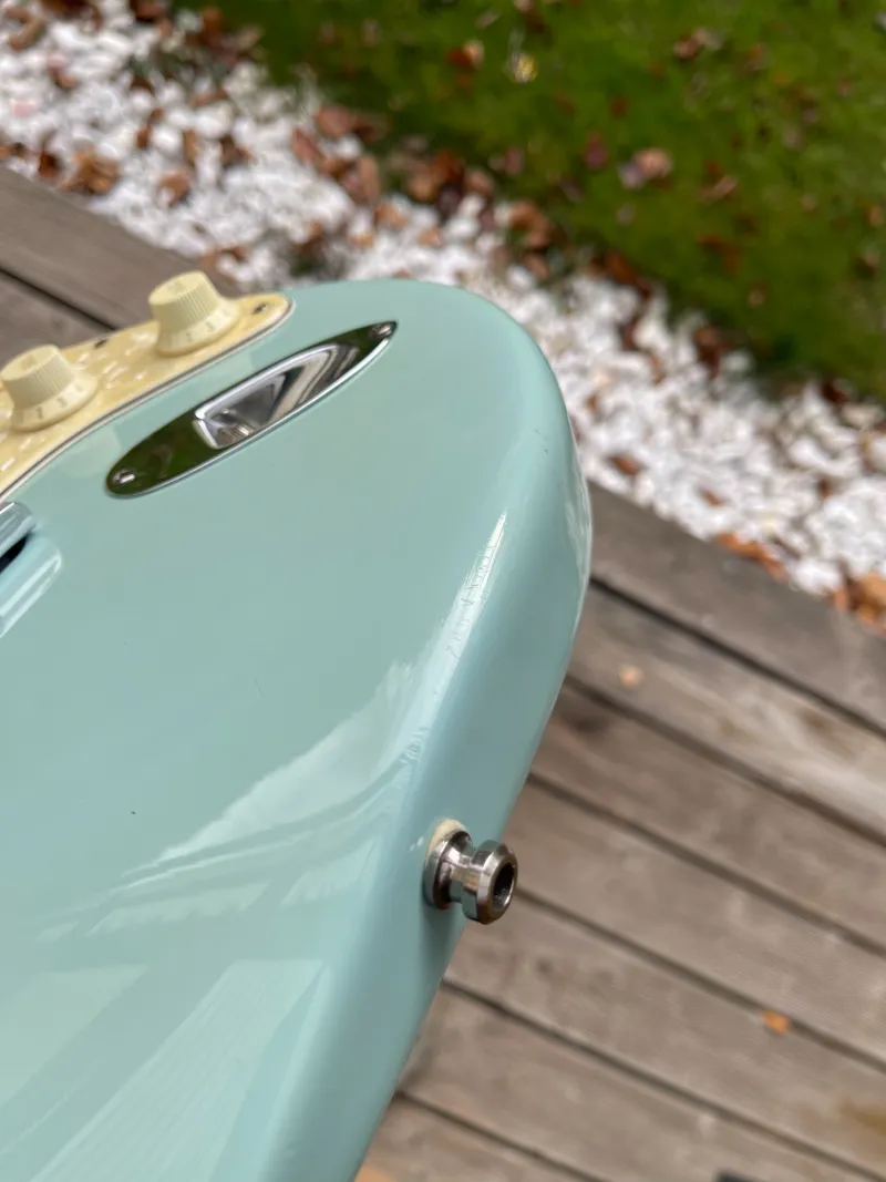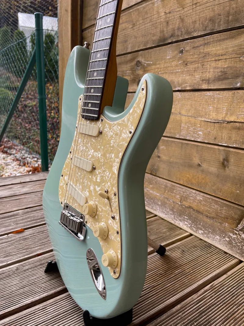 I am selling this beautiful American Stratocaster in the rare Sonic Blue color from 1996. Alder body, maple neck with modern C profile, rosewood fingerboard with 9.5’’ radius, 3x noiseless Lace sensor gold (same as on Clapton, Beck models), TBX bridge (trebble and bass expansion), tremsetter, locking tuners, LSR Roller nut. All original, set-up by my guitar tech. The guitar plays easy and has a nice sparkly tone but also warmth.. Case, tremolo arm, and strap are included. For sale only. Shipping from the Czech Republic, insured and tracked via courier.Versand