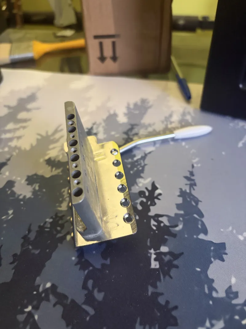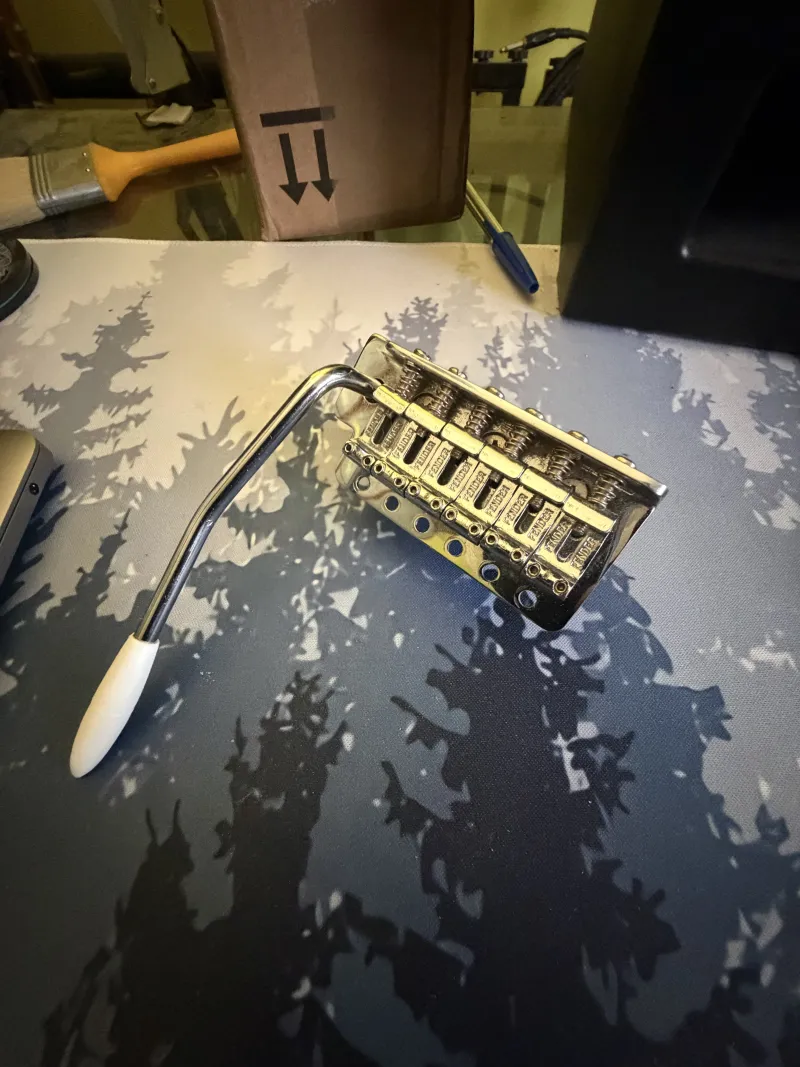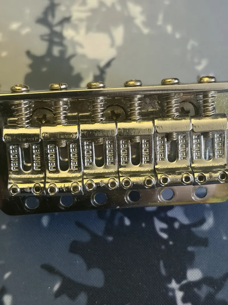 Eladó fender Tremolo, rövidített “Gilmour˝ karral, erősen használt állapot a blokkban a kar menete működik viszont folyamatosan forog amikor be van csavarva a karVerknüpfter Testbericht