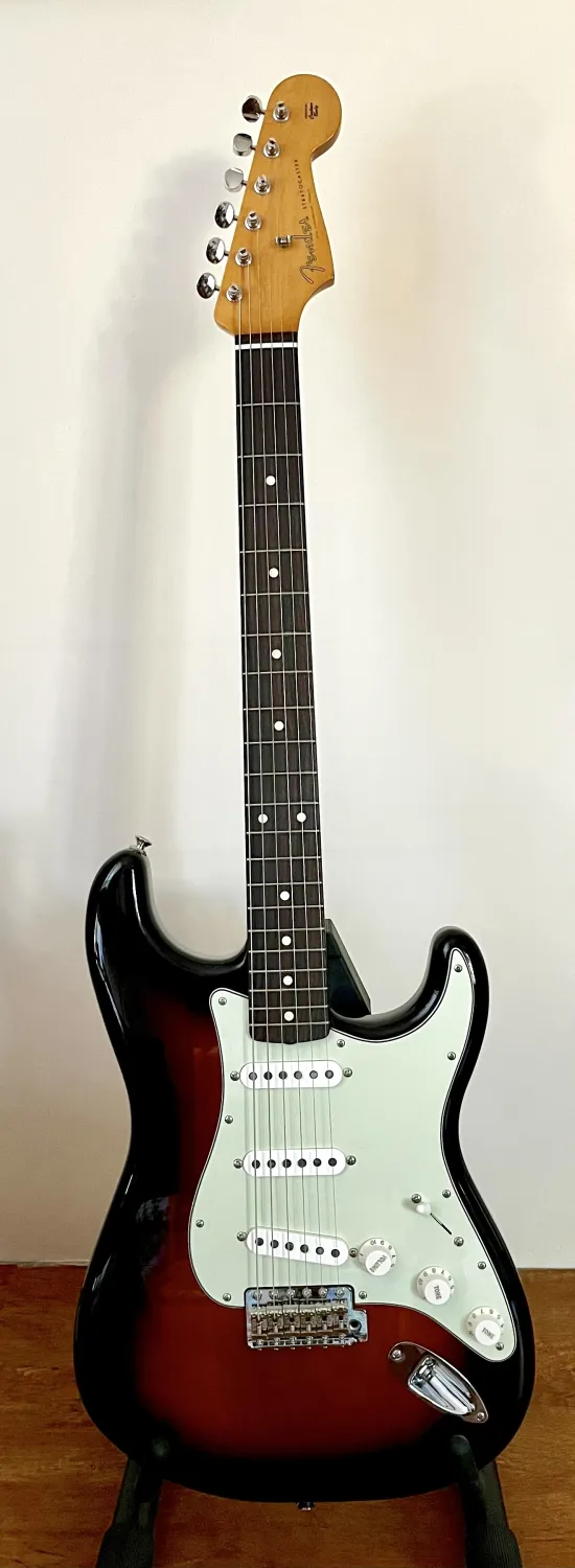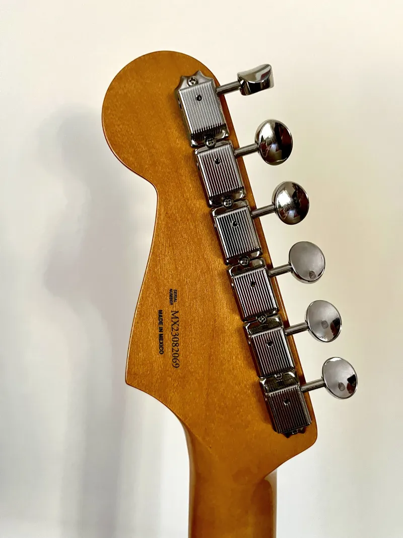 2023-as mexikói 60-es évek stílusú Strat hibátlan állapotban, gyári puhatokkal, minden tartozékával, első tulajdonostól. A tremoló takarólemezét cseréltem, de megvan az eredeti is. 3,5 kg.Kipróbálható Budapesten a Budagyöngye közelében, átvehető a Széll Kálmán téren, vagy GLS-sel utánvéttel fel tudom adni 6000-ért.