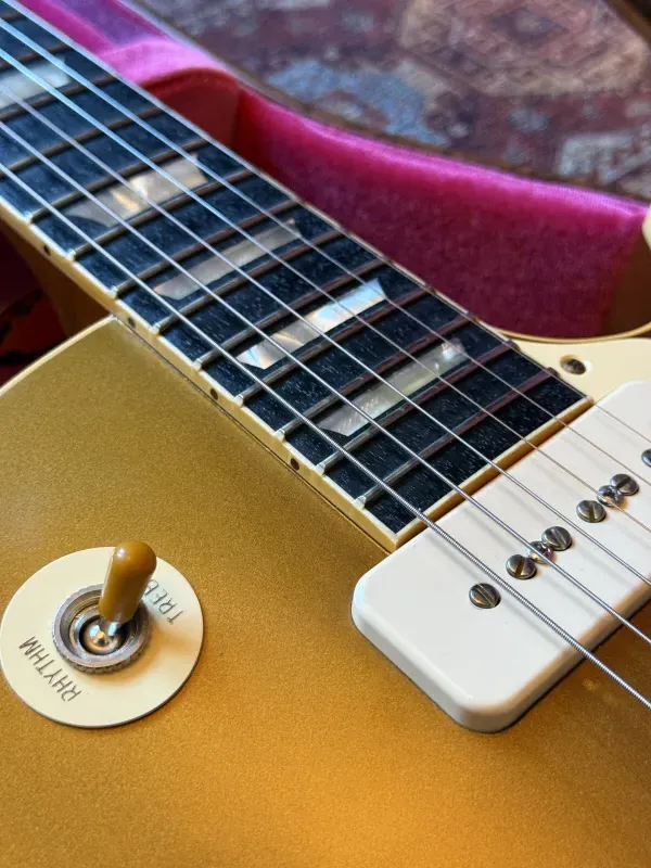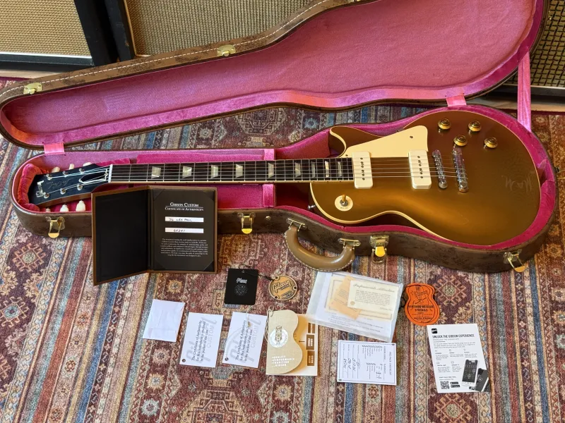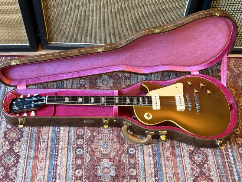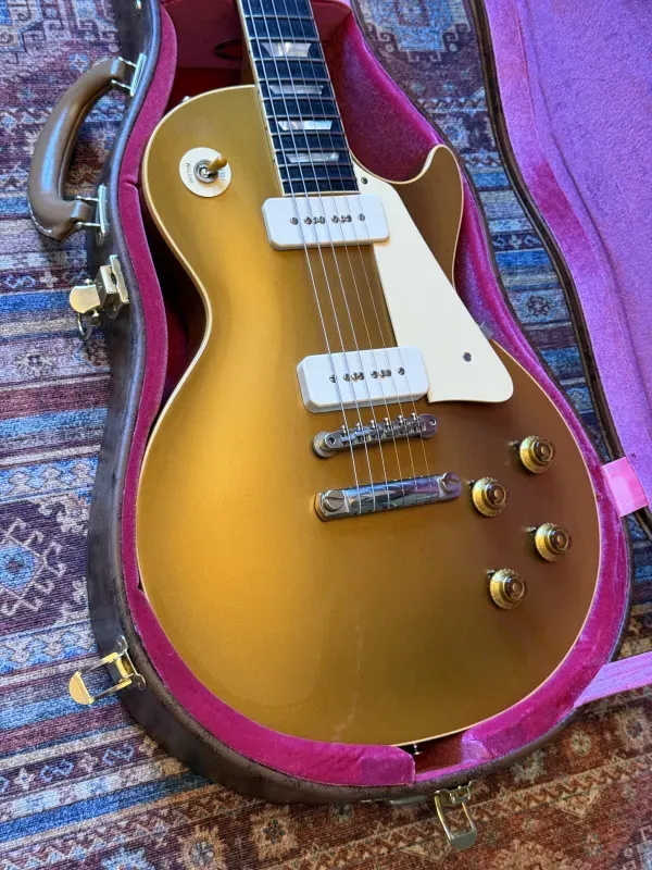 🎸 Eladó: Gibson Les Paul 1956 Reissue VOS - klasszikus Goldtop, Custom Shop minőség! 🎸Eladó egy gyakorlatilag új Gibson Les Paul 1956 Reissue VOS, a Custom Shop egyik ikonikus újrakiadása. A hangszer a ’50-es évek közepének eredeti specifikációit követi két darab P-90 hangszedővel. A gitár csupán 3735 grammot nyom, nagyon ritkán találni ilyen könnyű tömör testű les pault.