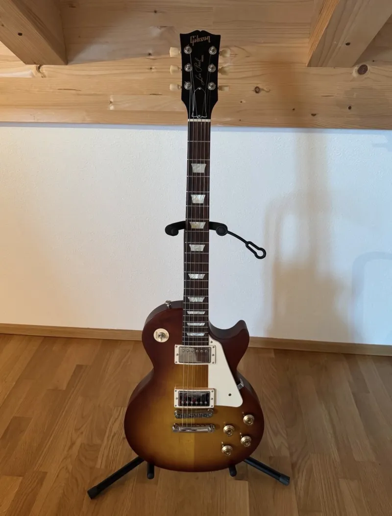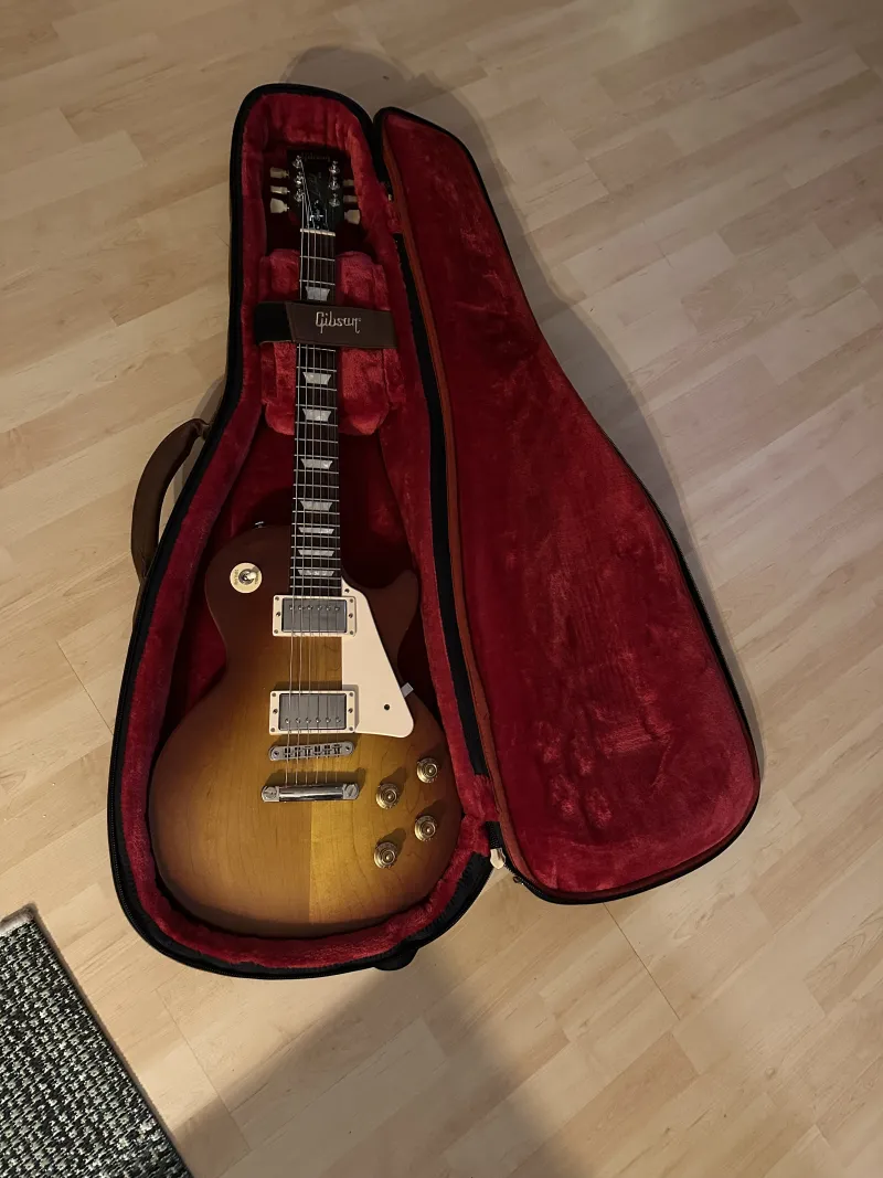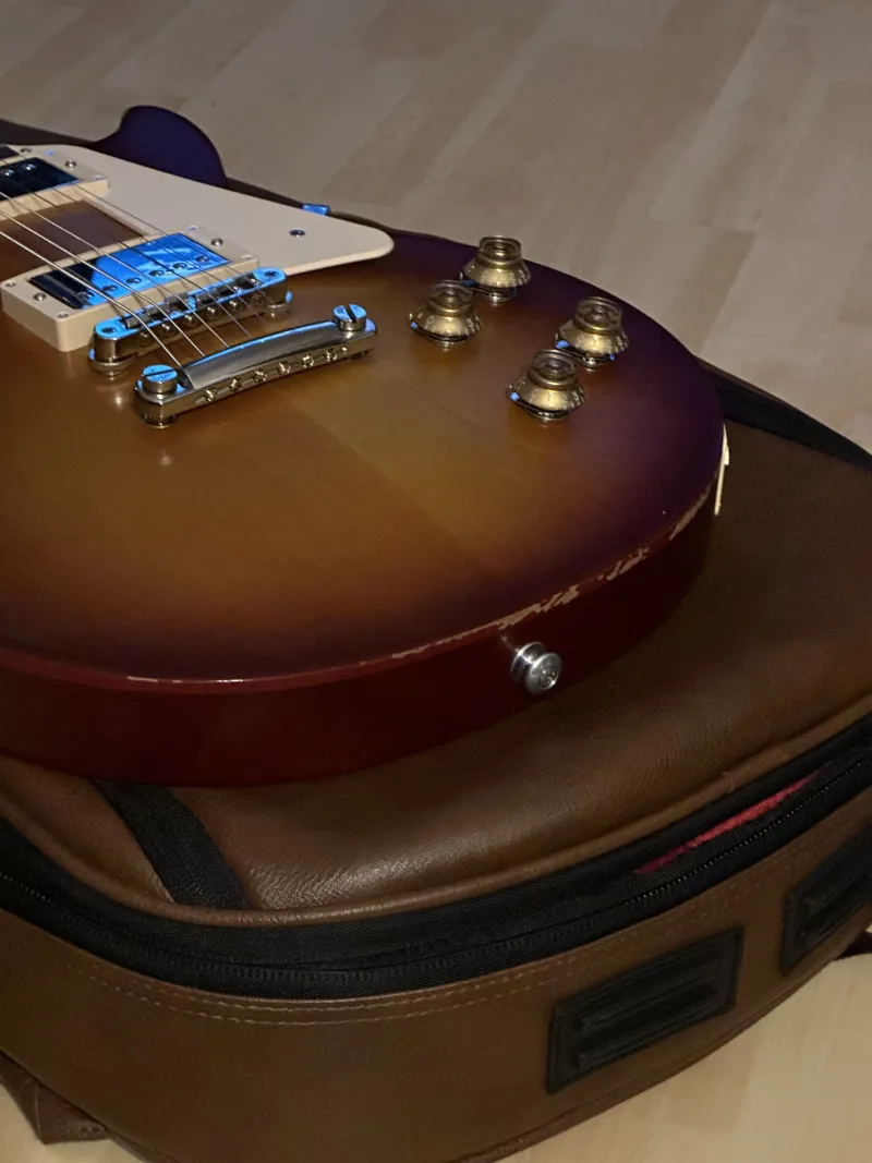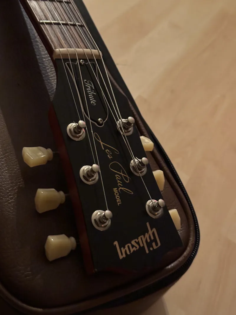 2019es LP Tribute, Iced Tea színben, gyári mindenével, tokkal és egyéb tartozékával.A nitro lakknak nem tetszett az előző tulaj állványa, ez sajnos olyan, amilyen.