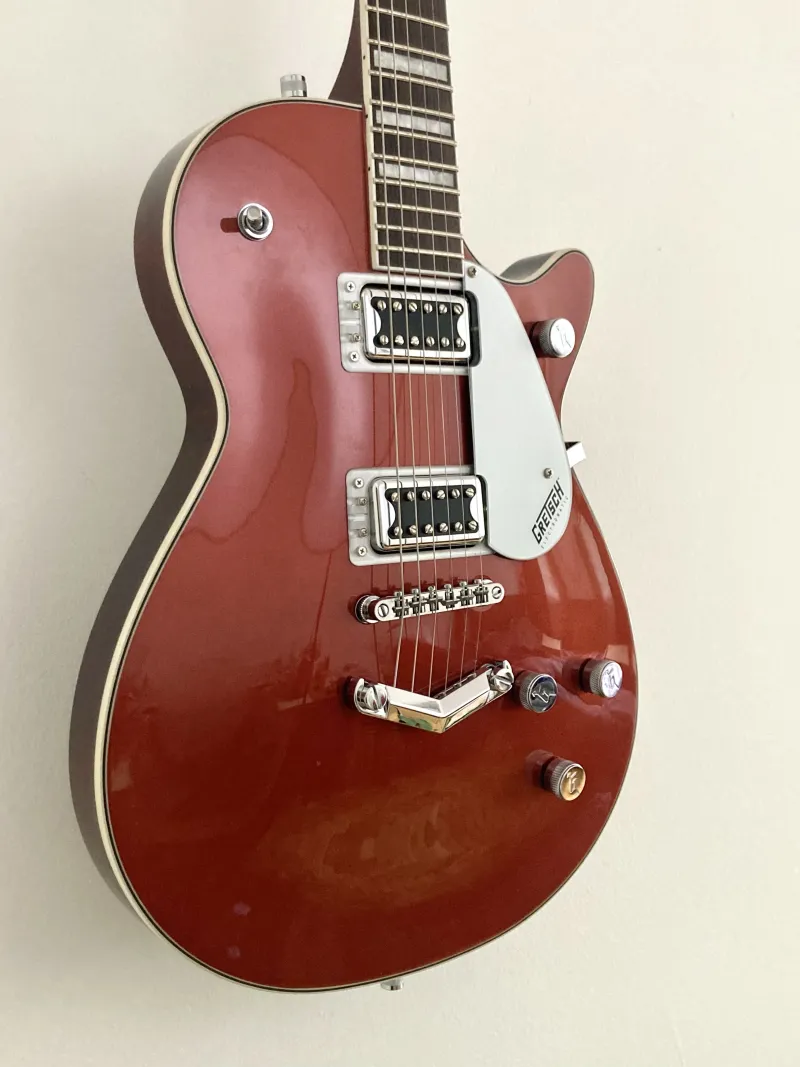 Gretsch G5220 Electromatic Jet BT - Firestick red2022-es gyártmány, gyönyörű, makulátlan (teljesen sérülésmentes) állapotban. Nagyon könnyű, nagyon kényelmes gitár, nagyon karakteres hanggal. Éppen, hogy csak kipróbàlva volt. Új, 10-es húrszettel, fogólap frissen beolajozva.