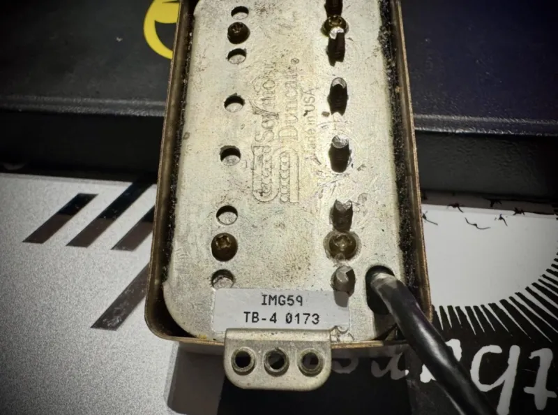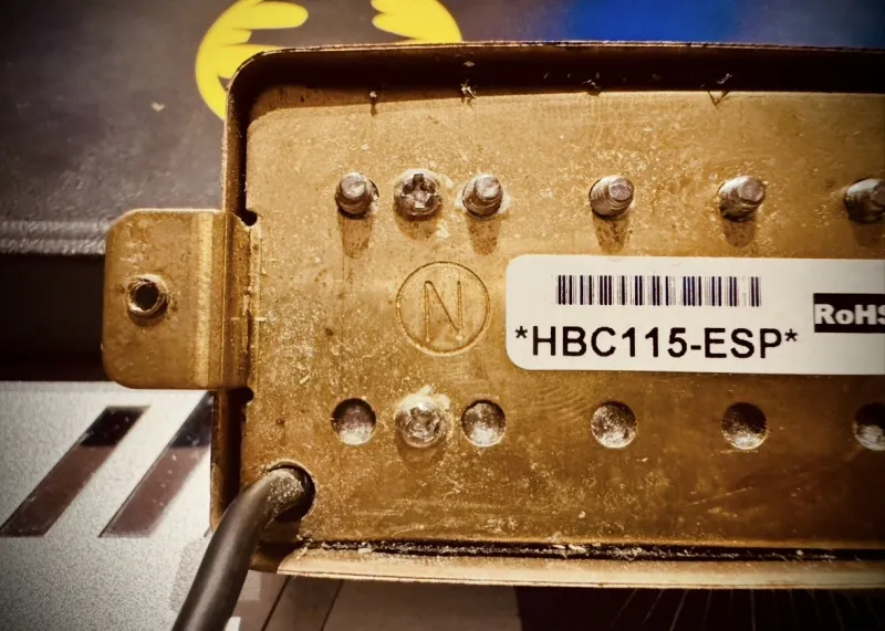 -A hangszedők: Most egy Seymour Duncan TB-4 van bridge-nál és a nyaknál meg egy ESP HBC115 amikre rá lettek hegesztve fehér fedők.