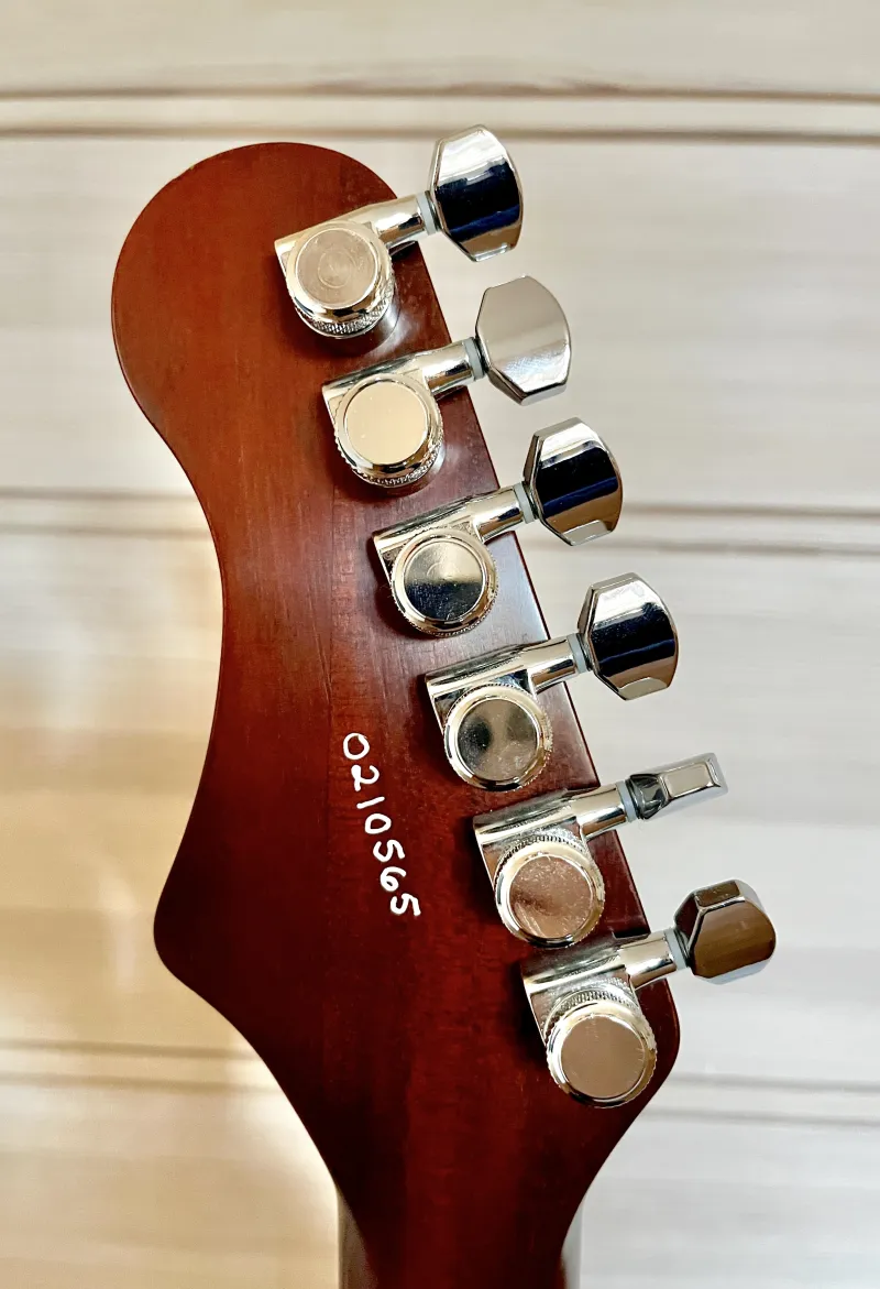 2021-es amerikai Harmony Rebel. A Harmony a Heritage Guitars társmárkája, ugyanabban a gyárban készülnek a gitárjaik. Kinézetre és hangra is egy SG és egy Tele keveréke. Mahagóni test, csavarozott nyak, gold foil hangszedők, zárható hangolókulcsok, nitrocellulóz lakk, mindössze 3,2 kg.Cseréltem rajta a potisapkákat és a hevedertartó gombokat, de megvannak az eredetiek is. Hibátlan állapotban, de gyári tok nélkül, egy vékony puhatokot tudok hozzá adni.