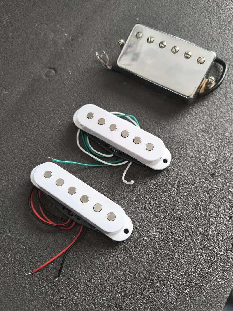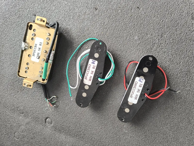 Ibanez AZ Standard (AZ22S1F) gitárból származnak, gyakorlatilag vadiúj szett. Két alnico mágnes single coil és egy kerámia mágnes humbucker. A csere oka egyszerű sznobizmus. Minden hangszeremben ugyanarra a márkára cserélem a hangszedőket.