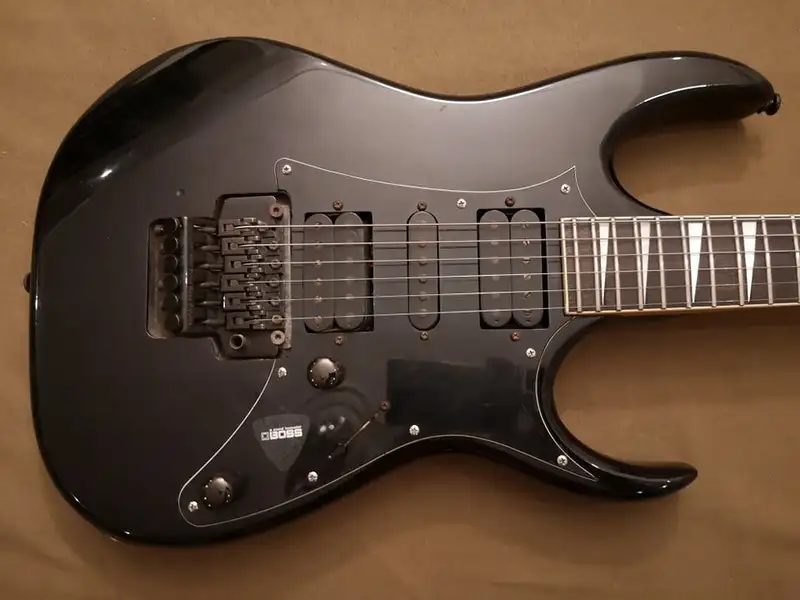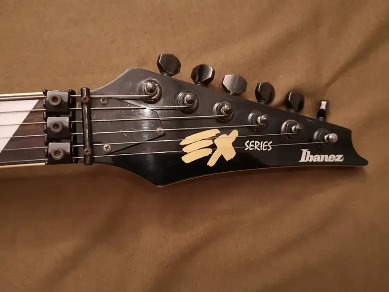 Eladó 1991-es Koreai Ibanez EX gitár. Igazi klasszikus. Brutál kényelmes nyak, dögös, öblös hang ! No1. Csak a kollekció leépítése miatt eladó.A koptatón 2 mikró kapcsoló helye található. (Egyik képen látható) Tremoló kart csak króm színüt tudok adni hozzá, mert az eredeti nincs meg.
