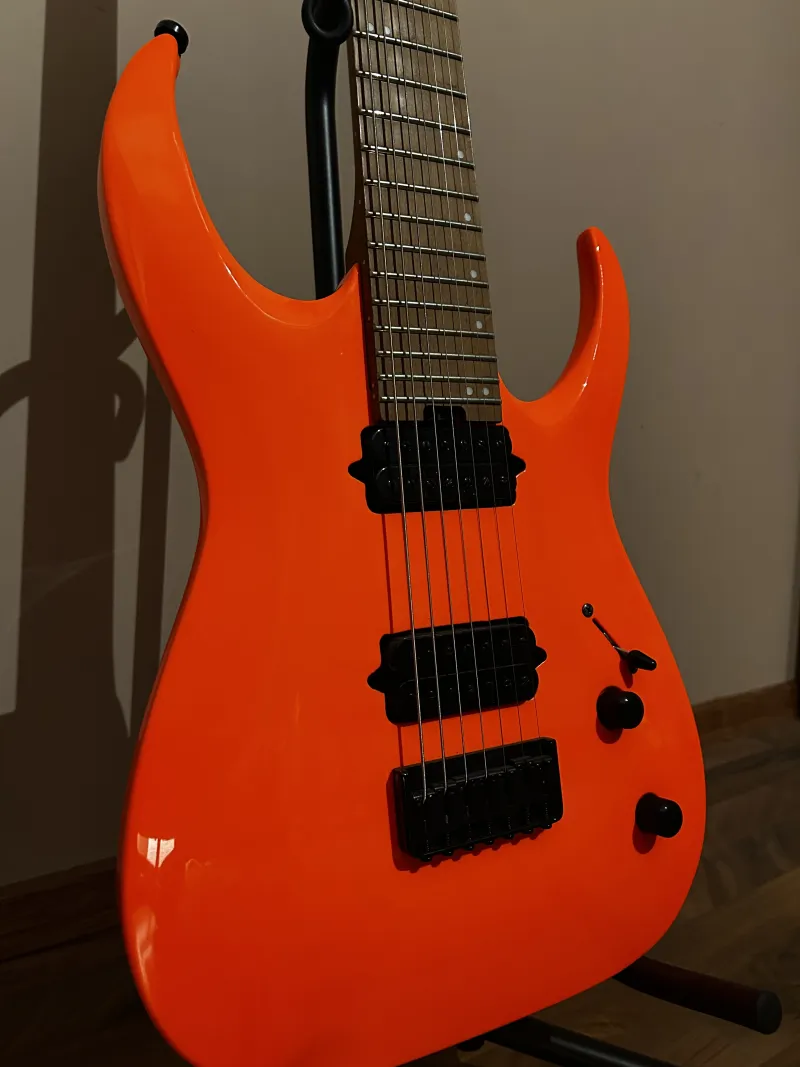Eladó Jackson Pro Series Misha Mansoor Juggernaut HT7 Neon OrangeHibátlan állapotban, jelenleg Drop A hangolásban.