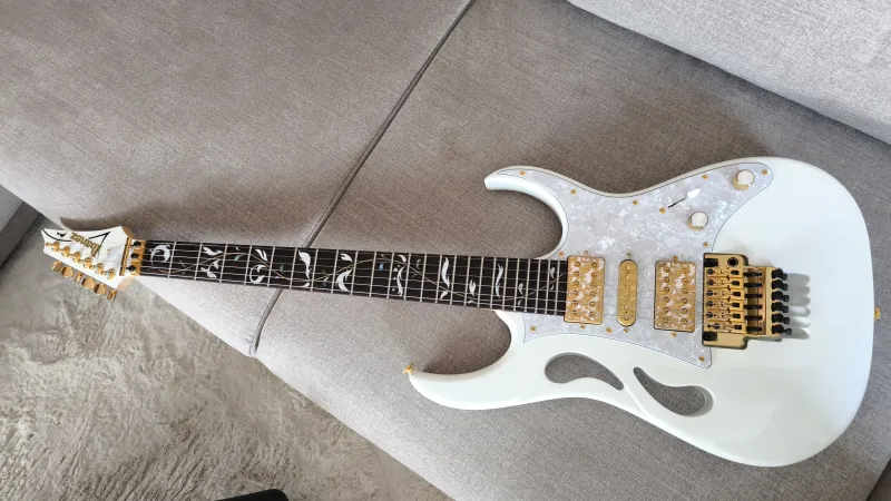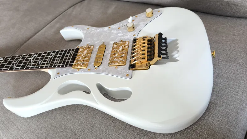 2021-es Ibanez Pia - Steve Vai signature elképesztő szép Stallion White (gyöngyház fehér) színben.