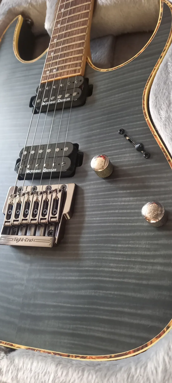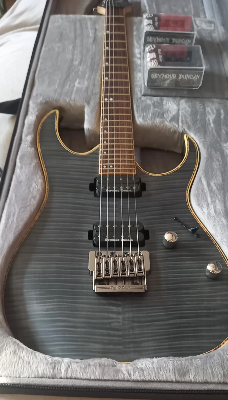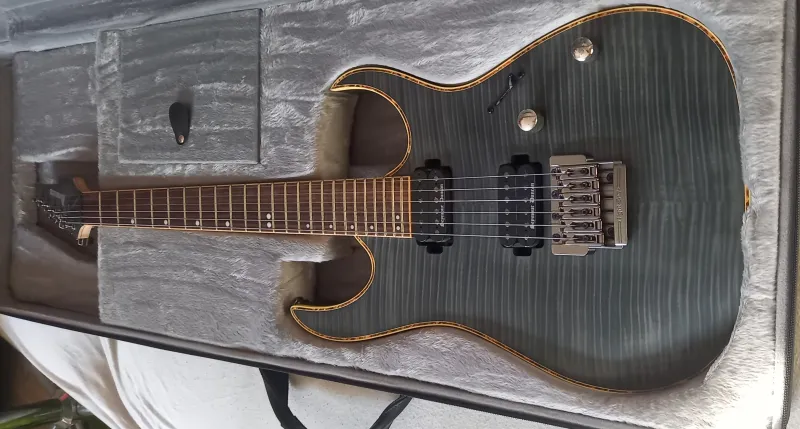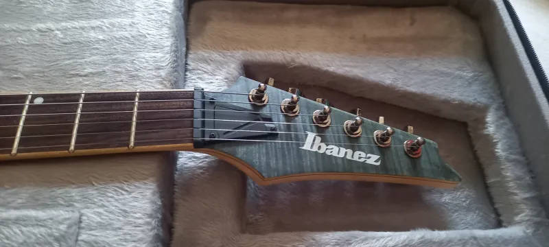Ibanez Premium RG721FM-BIF (Black Ice Flat) elektromos gitár, gyári fél-kemény tokkal, kiváló állapotban (Made in Indonesia). Seymour Duncan Black Winter hangszedőkkel.
