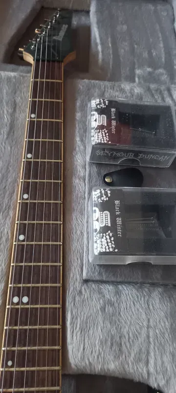 Az eddigi érdeklődők miatt írom, hogy nem kell megijedni a Seymour Duncan Black Winter hangszedőktől, pont annyira torzítanak, amennyi torzítót tesz rá az ember. Gyönyörűen szólnak tisztán, crunch-osan és harapós rock torzítással is. Tehát ez nem egy `turbó-metál` hangszedő, lehet azt is tudja, de minden mást is. Ez egy drága és klassz hangú, minőségi hangszedő. Ki lehet próbálni.Ha valakinek mégsem jön be, hangszedő nélkül is eladó a gitár, az ára úgy 185e Ft, a félkemény tokkal.