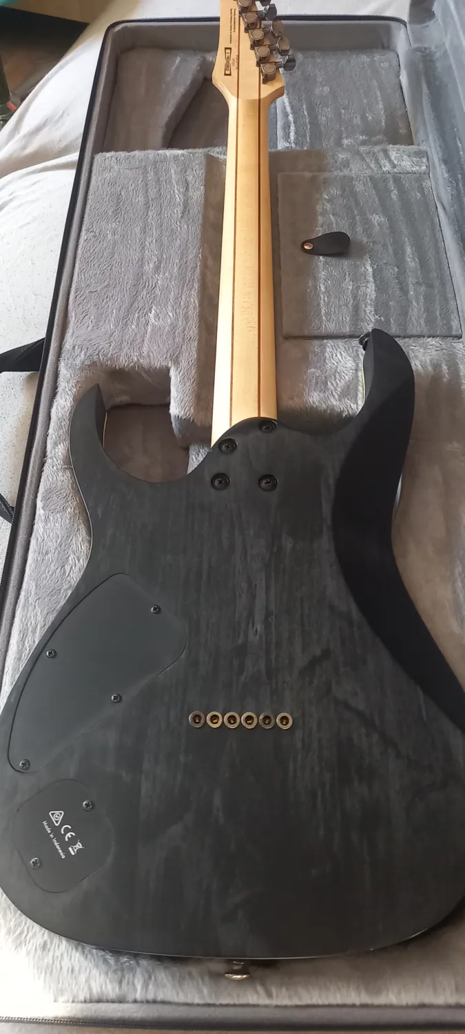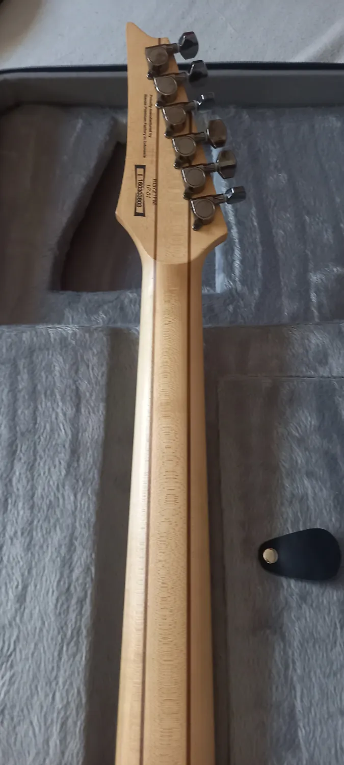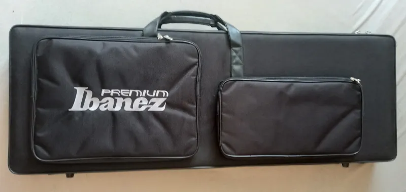 Amerikai hársfa test, lángolt juhar toppal, 5 részes jávor/dió wizard premium nyak, rózsafa fogólap, 5 állású pickupváltó, testen átmenő húrozás, jumbó bundok, prémium bundszél kezeléssel, gyári IBANEZ hardshell tokkal.