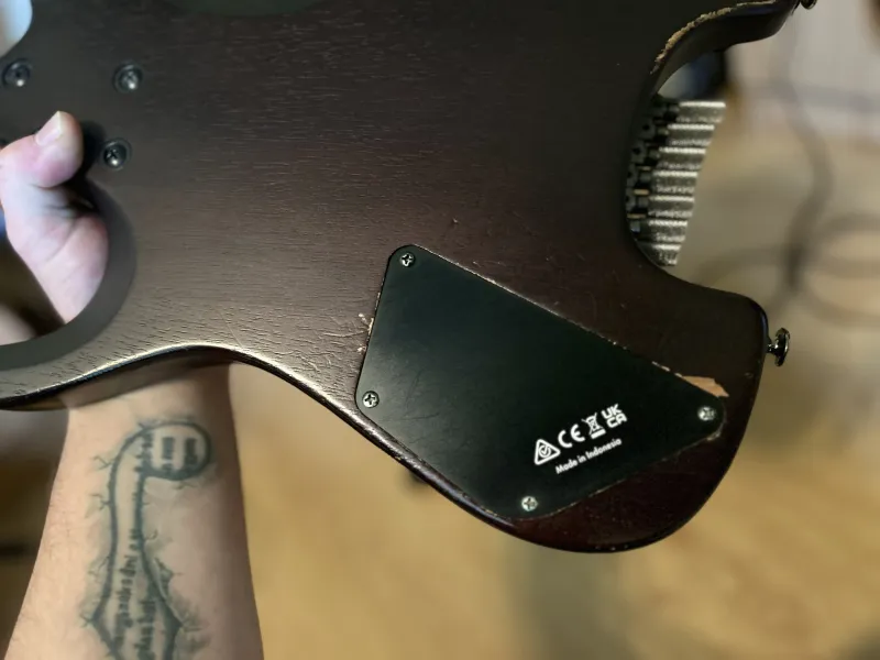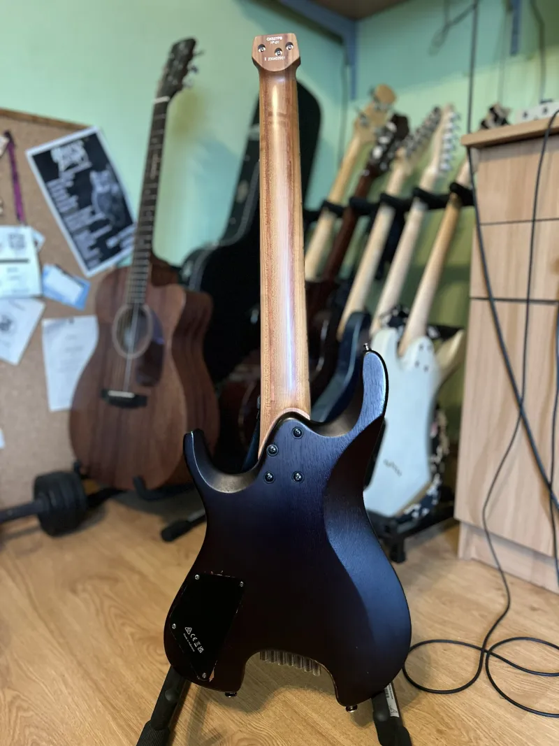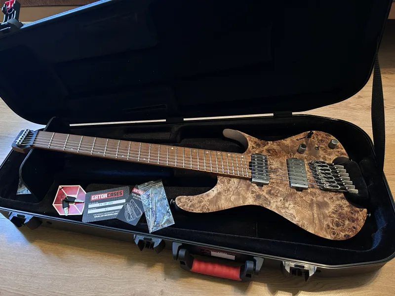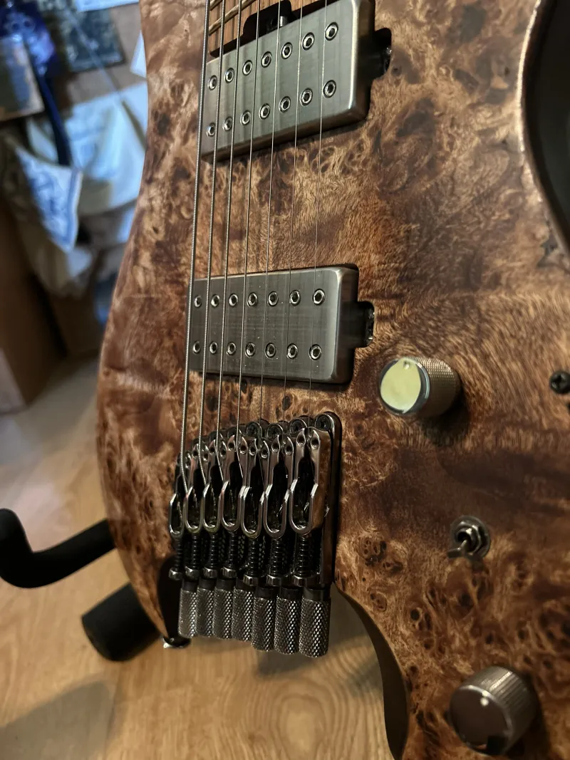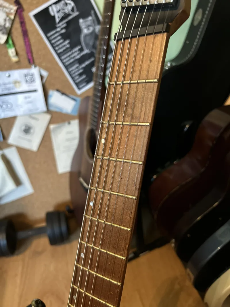 Eladó drop G-re beállítva guitar.clinic által Ernie Ball Paradigm STHB 7 String 10-62 húrszettel.Nem csak a szobában használtam, bizonyított 2 turnén. Sérüléseit,hibáit fotóztam.