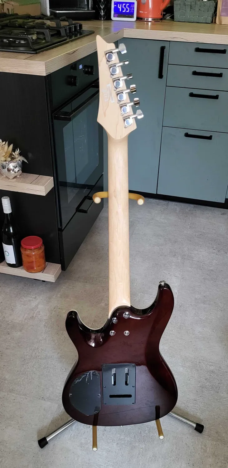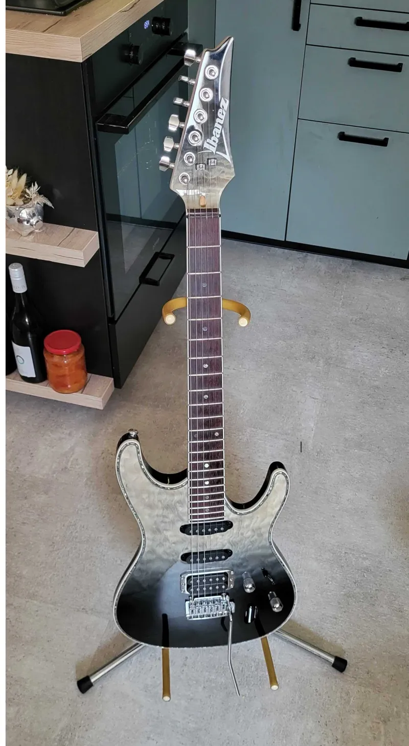 Eladó egy gyönyörű superstrat Ibanez SA360NQM-BMG gitár. Kifogástalan állapotú, egy szett húr lett cserélve rajta, még garanciális. Emiatt a gitár miatt kezdtem el újra gyakorolni, szóval nagy szeretettel ajánlom kezdőknek és középhaladóknak. Sajnos már túlnépesedés van saját készítésű gitárokból itthon, szóval az eladás mellett döntöttem (hogy legyen pénz majd még szárazfára... :D ) Nagyon szép a kidolgozása, fogása, és izgalmas fa használat jellemzi, tényleg remek darab. Új ára 180e-től, de inkább már 200+.Paraméterei: