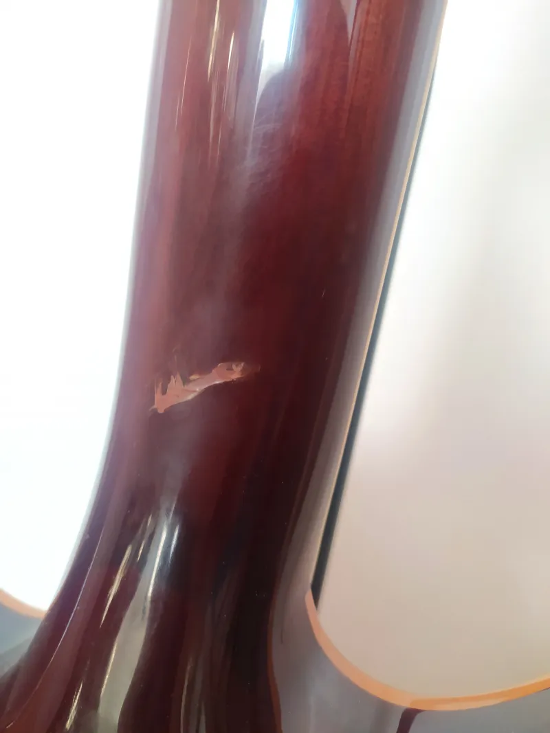 Az egyik korábbi tulajdonosnál keletkeztek a képeken látható sérülések a gitár nyakán. Ezeket amennyire lehet kezelte, játék közben nem zavaróak.