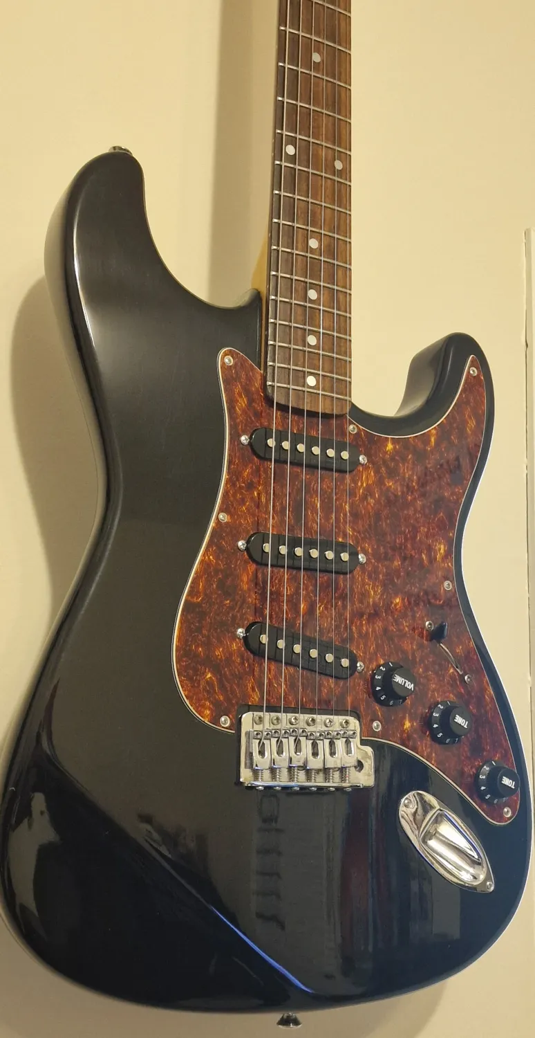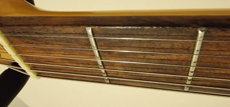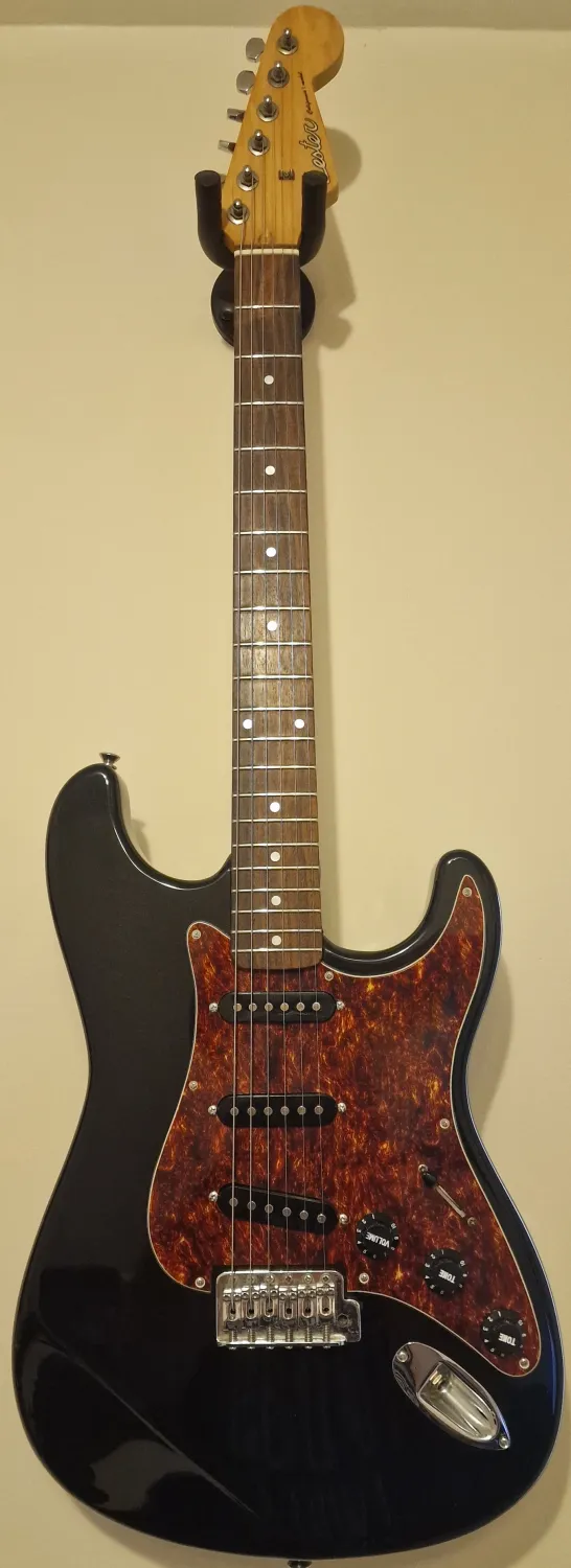 Elvileg a 80-as években készült és elvileg tömör éger a test, rózsafa a fogólap. Mondjuk a fogólapnak tényleg minőségi fogása van, 100 ezer alatti gitárnál én még nem nagyon éreztem jobbat.