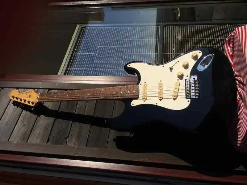Hergestellt in Korea, massiver Erlenkorpus, Palisandergriffbrett, absolut Fender-konforme Abmessungen.