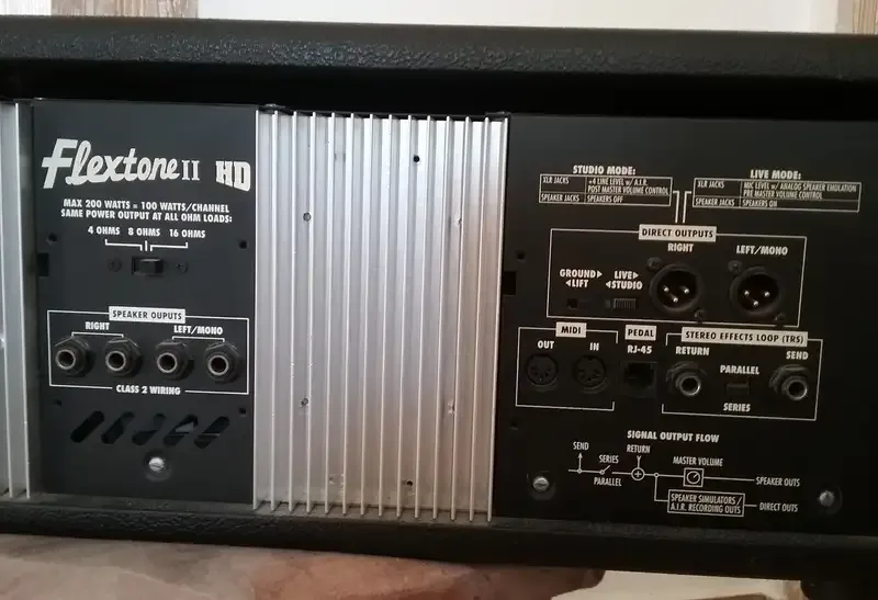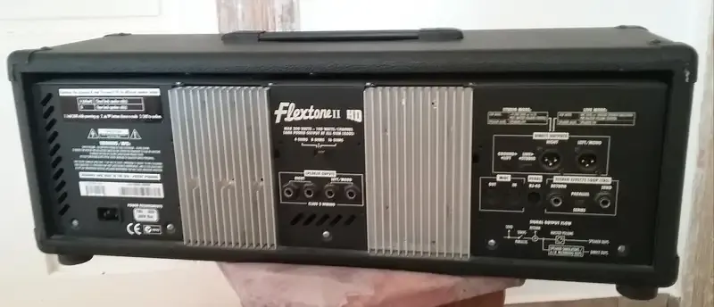 Eladó (kihasználatlanság miatt) Line6 Flextone II HD erősítő fej, 2x100 watt teljesítmény, sztereó effektek, midi, stb.A 2000-es évek elejének egyik legjobban bevált line6 erősítője, sok nagynevű, főleg modern metál együttesben hallhattuk, többek között ezzel a típussal készült az Evanescence Fallen című lemeze is, de egyéb műfajokban is használható.