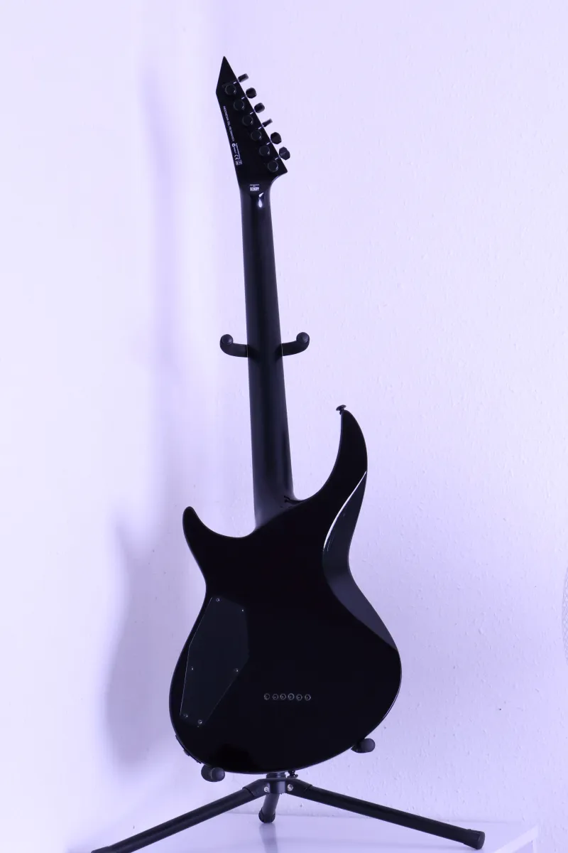 Megkímélt, látványos, modern hangszer, átmenő nyakas konstrukcióval.