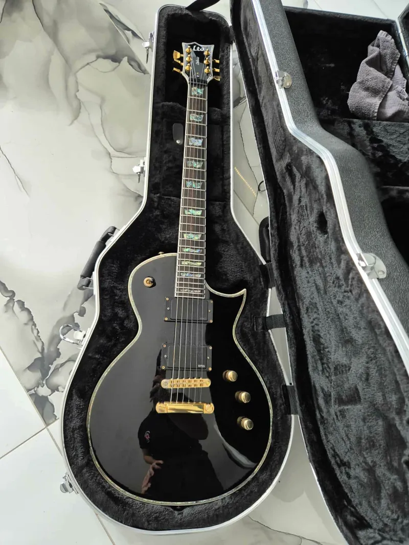 Eladó LTD EC-1000 BLK gitárom, kitűnő, karcmentes állapotban. A húrlábon használat következtében enyhe kopás észlelhető, ezt láthatod a fotón is. A gitár nemrég teljeskörű beállításon ment át, és vadiúj elem van benne.A gitárhoz tartozik egy ajándék Gator keménytok is.